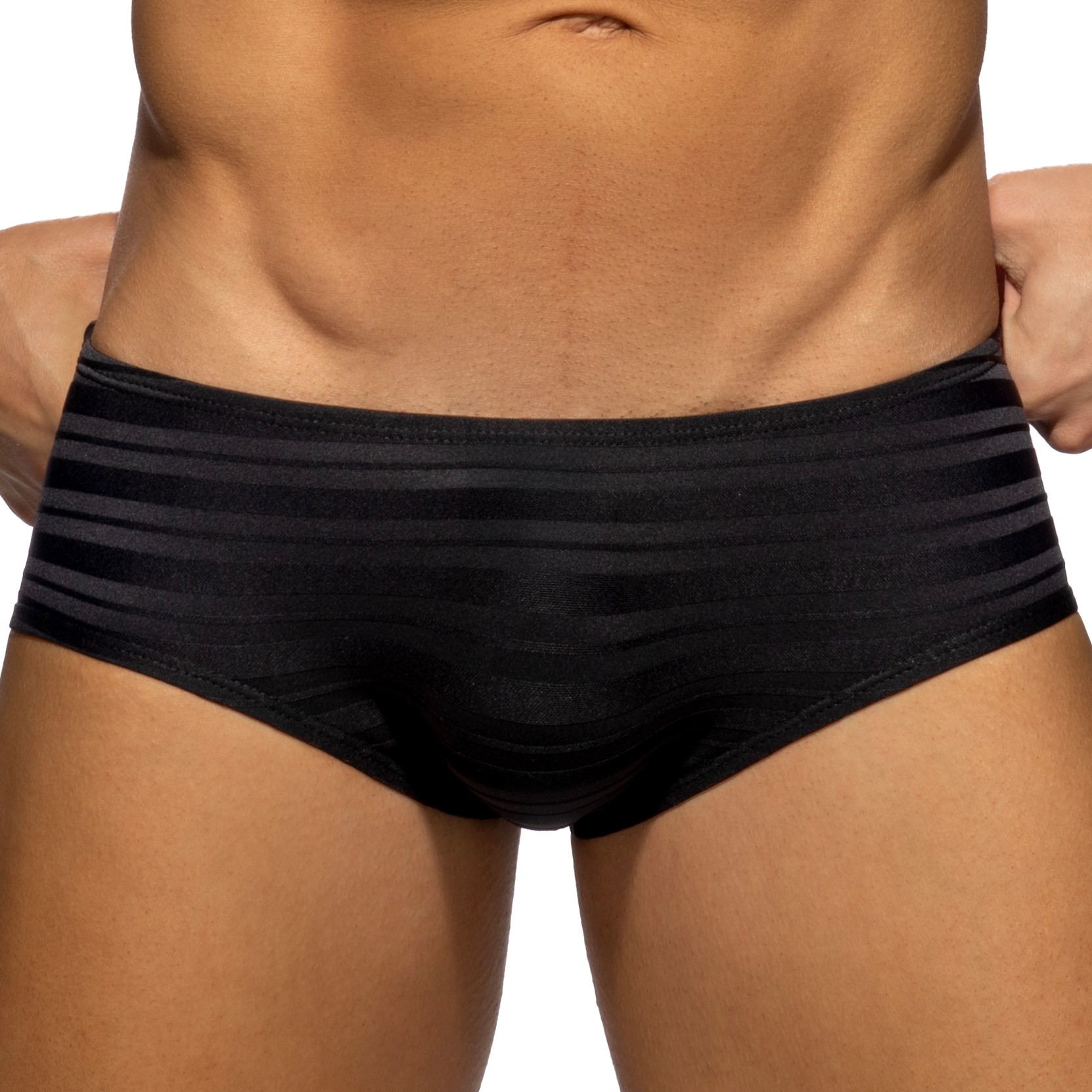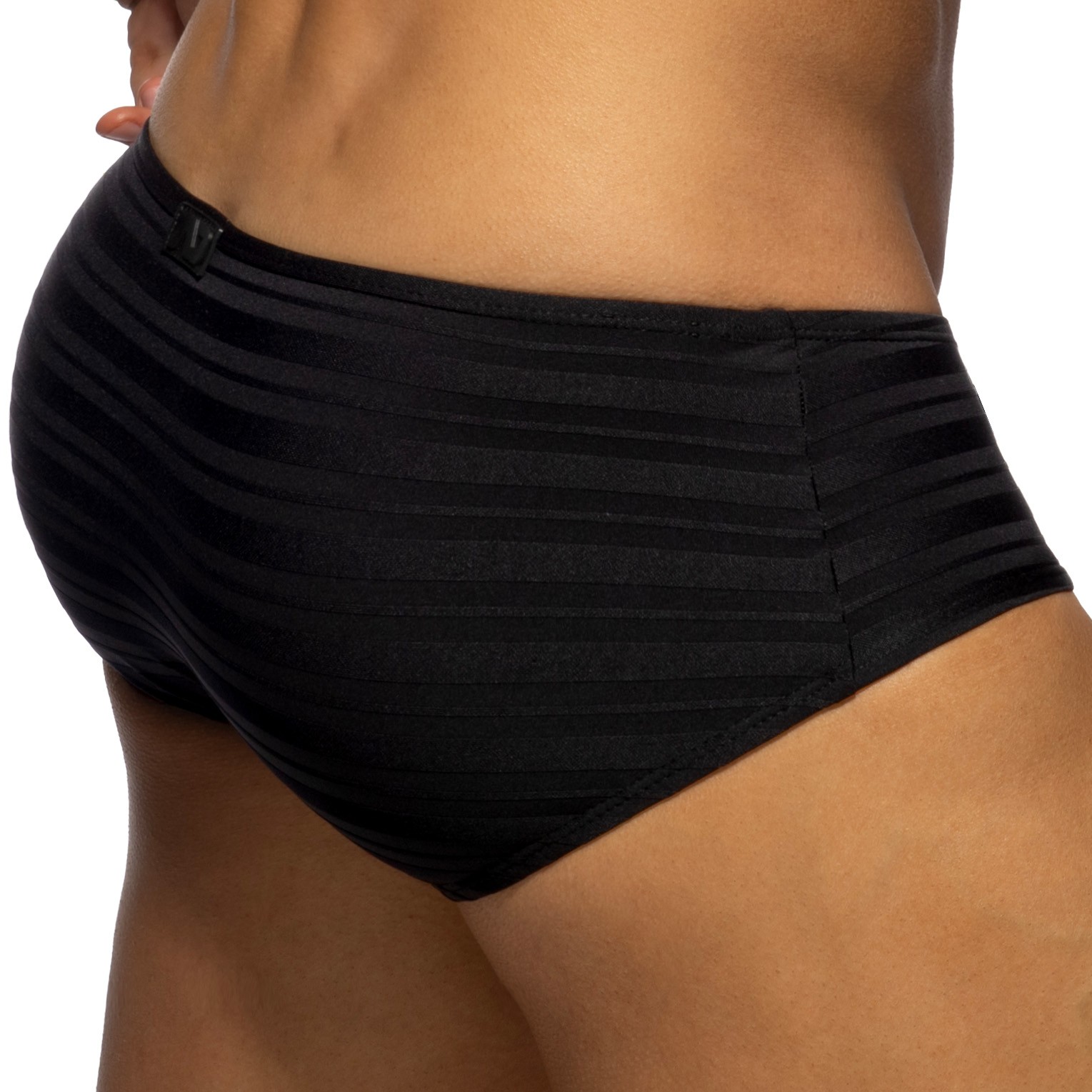 Folge den Linien. Horizontal gestreifte Linien lenken Ihre Augen auf diese schlanken und eleganten Bikini-Slips. Sehr leichter Transparenzeffekt auf einem Stoff, der seidig, weich und angenehm zu tragen ist. Hergestellt mit Formtechnik, was bedeutet, dass es keine Nähte oder Nähte gibt, also keine Kratzer oder Juckreize. Farbabgestimmtes Silikon-AD-Logo auf der Rückseite.
