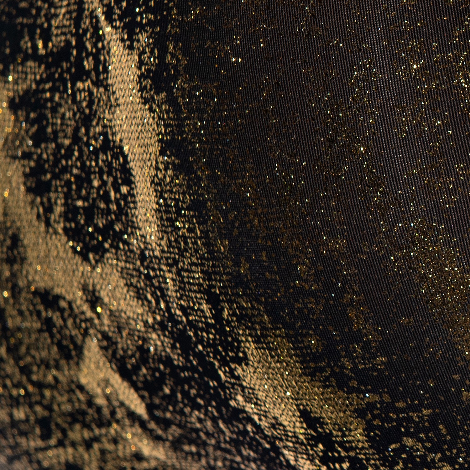 24K Flirt. Haben Sie eine solide goldene Attitüde in diesen atemberaubenden Bikini - Slips, die Sie wie eine goldene Schatztruhe glitzern lassen. Der exquisite Stoff hat ein abstraktes Design aus Goldspritzern durchgehend, das auf etwas darunter hindeutet. Die goldenen Farbtöne verbergen subtil ein attraktives, halbtransparentes Material darunter - und vermitteln so gerade genug visuelle Merkmale Ihrer Familienjuwelen. Die vorderen und hinteren Teile sind mit doppelten Metall-Goldringen - zusammengesetzt, die noch mehr Luxus ausstrahlen, wenn man das hinkriegt? Die elastischen Zonen an der Taille und am Saum - sowie das super dehnbare Material - sorgen für eine perfekte, stromlinienförmige Passform.