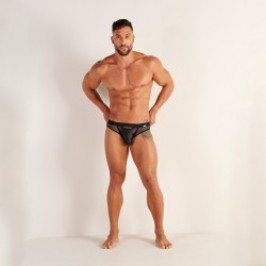 Mini Herren Slip mit niedriger Taille Fauve de Nuit, im Bikini-Schnitt und dünnem Gürtel aus ultraweichem Mikrofaser-Finish mit Lurex-Finish, ist komplett ungefüttert, um Leichtigkeit und Komfort ohne Einschränkungen zu bieten.