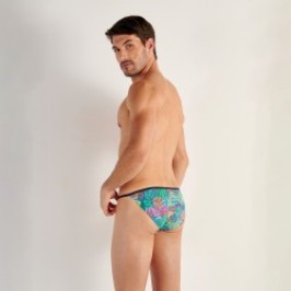 Die Funky Styles "Exotic Jungle" Mikro-Slips von HOM tauchen in ein intensives tropisches Universum ein, in dem üppige und farbenfrohe Muster eine wilde und exotische Note verleihen. Sein minimalistischer und moderner Schnitt betont die Silhouette und setzt gleichzeitig einen mutigen und trendigen Stil hervor. Hergestellt aus einem weichen, leichten und dehnbaren Material, bietet er ein Second-Skin-Gefühl und täglich optimalen Komfort mit präziser und diskreter Unterstützung. Ideal für alle, die Freiheit, Stil und exotische Energie bis ins kleinste Detail suchen.