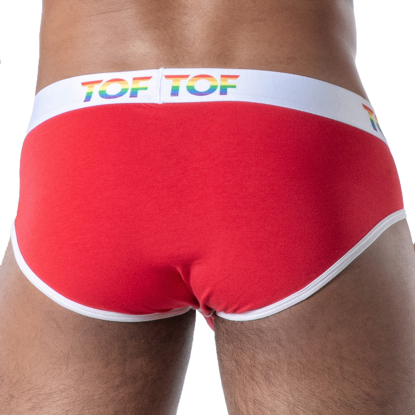 Entdecken Sie die fröhlichen roten Pride-Slips, ein ikonisches Stück von TOF Paris, das voll und ganz zum durchsetzungsfähigen Universum unserer Herrenunterwäsche, Boxershorts und Shorties, saitenlosen Herrenstrings und unserer Herren-Jockstraps-Kollektionen passt. Entworfen für Männer, die ihren Stil, ihre Sinnlichkeit und Freiheit genießen möchten, sind diese Slips der Inbegriff von kühner, bequemer und stolz farbenfroher Herrenmode.