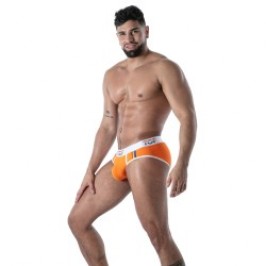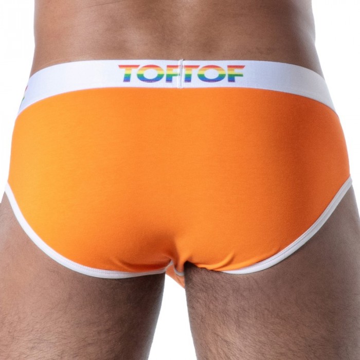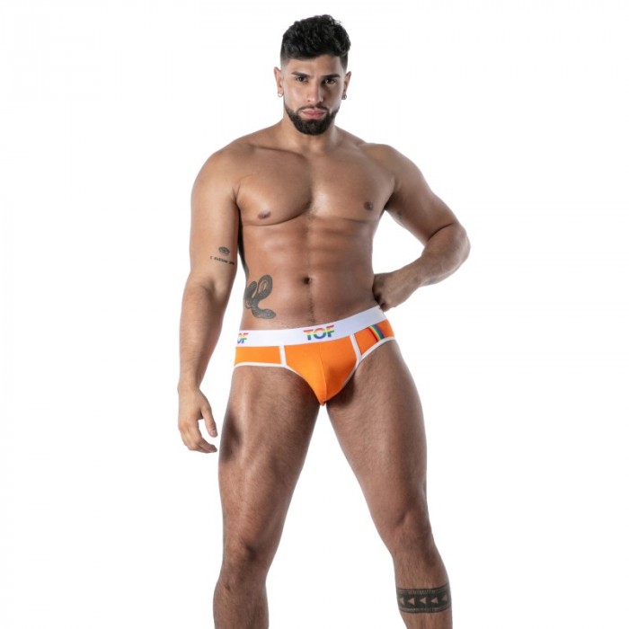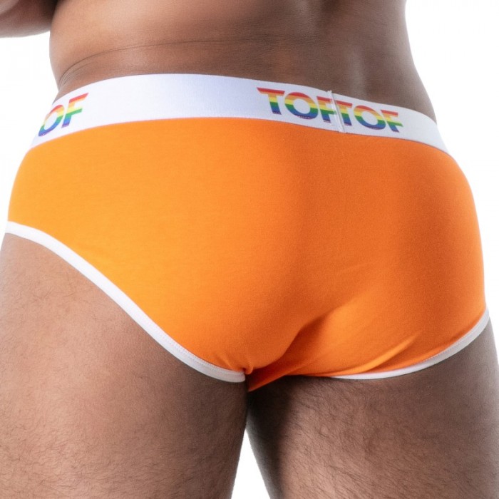 Entdecken Sie die fröhlichen orangefarbenen Pride-Slips, ein ikonisches Stück von TOF Paris, das voll und ganz zum durchsetzungsfähigen Universum unserer Herrenunterwäsche, Boxershorts und Shorties, saitenlosen Herren-Strings und unserer Herren-Jockstraps-Kollektionen passt. Entworfen für Männer, die ihren Stil, ihre Sinnlichkeit und Freiheit genießen möchten, sind diese Slips der Inbegriff von kühner, bequemer und stolz farbenfroher Herrenmode.