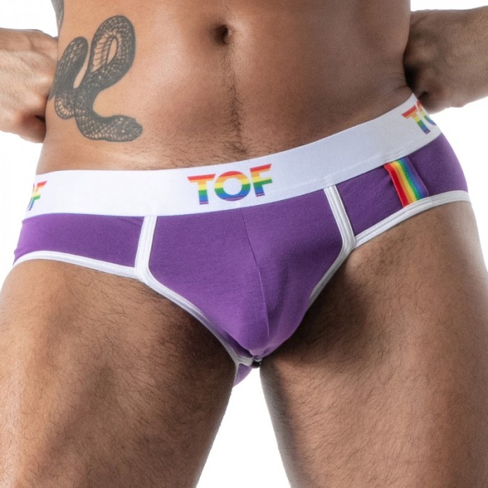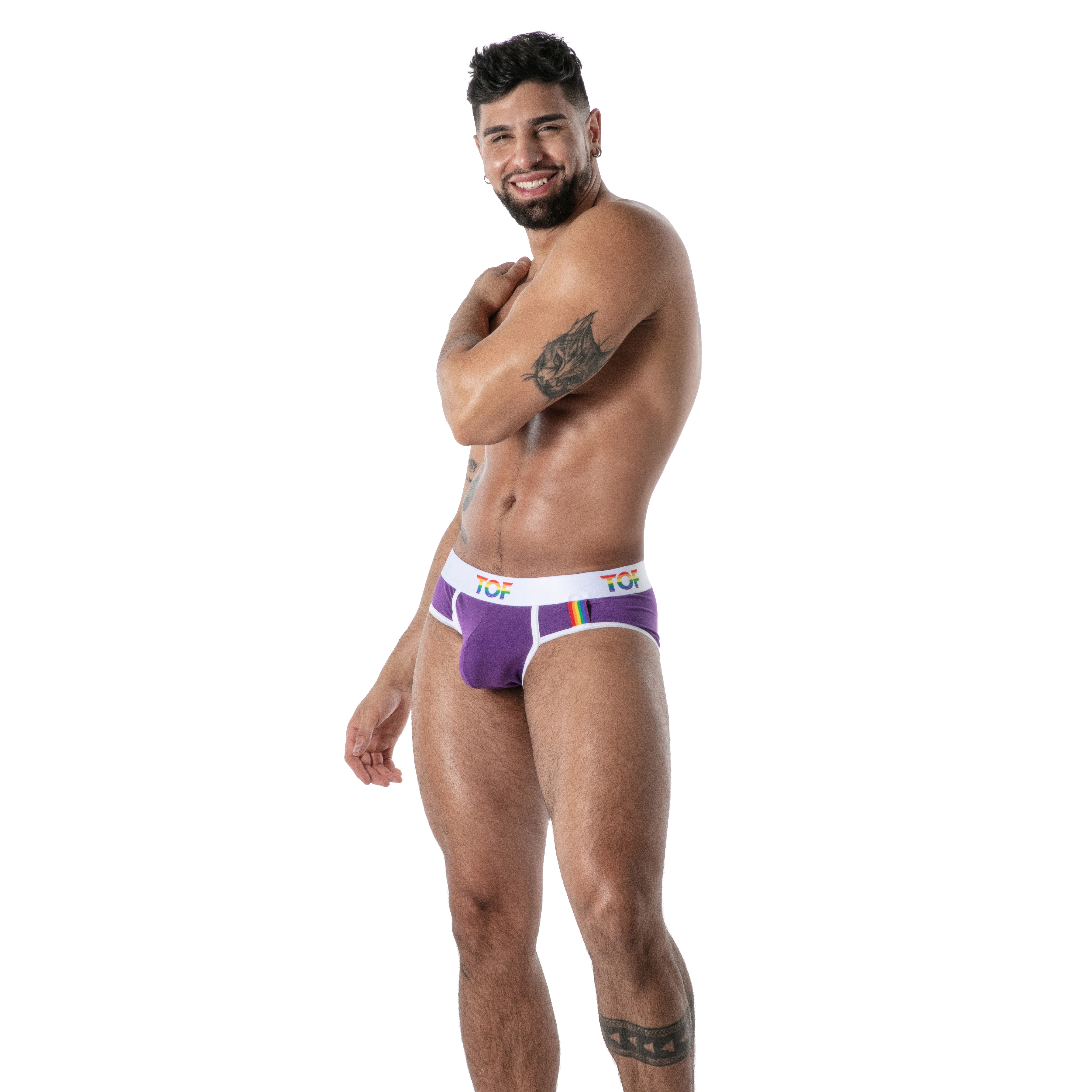 Entdecke die fröhlichen lila Pride-Briefs, ein ikonisches Stück von TOF Paris, das voll und ganz zum selbstbewussten Universum unserer Herrenunterwäsche, Boxershorts und Shorties, Strings mit und ohne Schnur sowie unseren Herren-Jockstraps passt. Entworfen für Männer, die ihren Stil, ihre Sinnlichkeit und Freiheit genießen möchten, sind diese Slips der Inbegriff von kühner, bequemer und stolz farbenfroher Herrenmode.