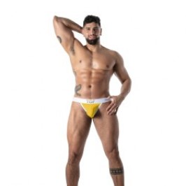 Entdecken Sie den gelben freudigen Pride-Jockstrap, ein absolutes Muss im TOF-Paris-Universum, entworfen, um die Silhouette zu betonen und einen mutigen Stil zu betonen – von den ersten Kollektionen unserer Herrenunterwäsche-, Boxershorts- und Shorties-Kollektionen, Tangas mit und ohne Schnur für Männer oder unseren sexy Herrensocken. Dieser Jockstrap ist die perfekte Verkörperung stolzes, freier und selbstbewusster Männermode.