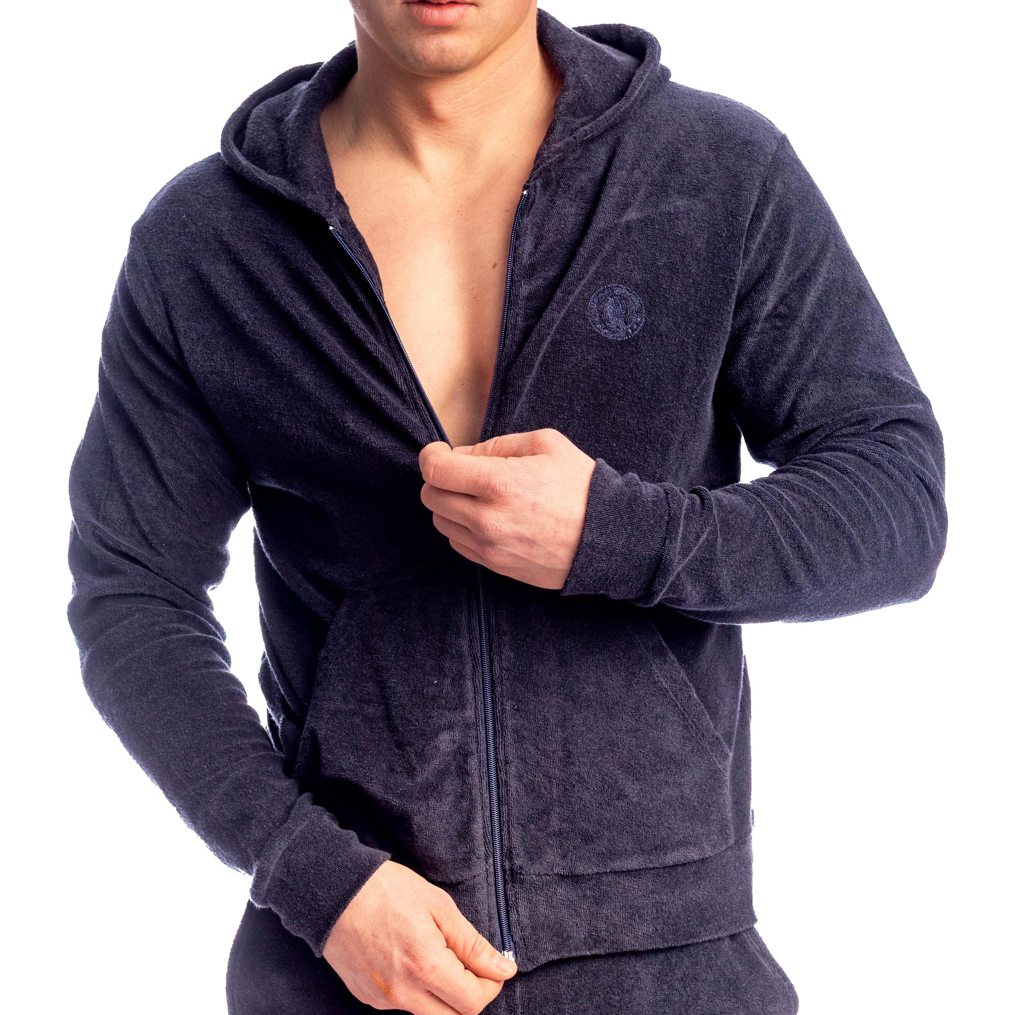 Der Fire Island Zip-Up Hoodie Navy definiert schicke Komfort neu. Hergestellt aus 100 % Baumwoll-Frottee, gefärbt für ein sattes Marineblau, verbindet es ein plüschiges Gefühl mit moderner Passform.