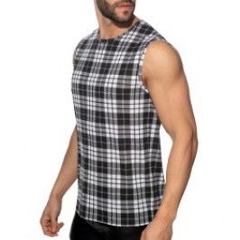 Zeig diese Dudelsäcke. Dieser Panzer ermöglicht es Ihnen, Ihre Waffen in dem sexiesten Tartanstoff der Stadt zu präsentieren. Gefertigt aus weichem und bequemem Dehnmaterial für eine perfekte Körperpassform. Das Design des breitschulterigen Tanktops hebt deine Männlichkeit hervor, als wäre es eine Tartandose. Auf der Rückseite, AD Fetish Logo aus passendem Silikon.
