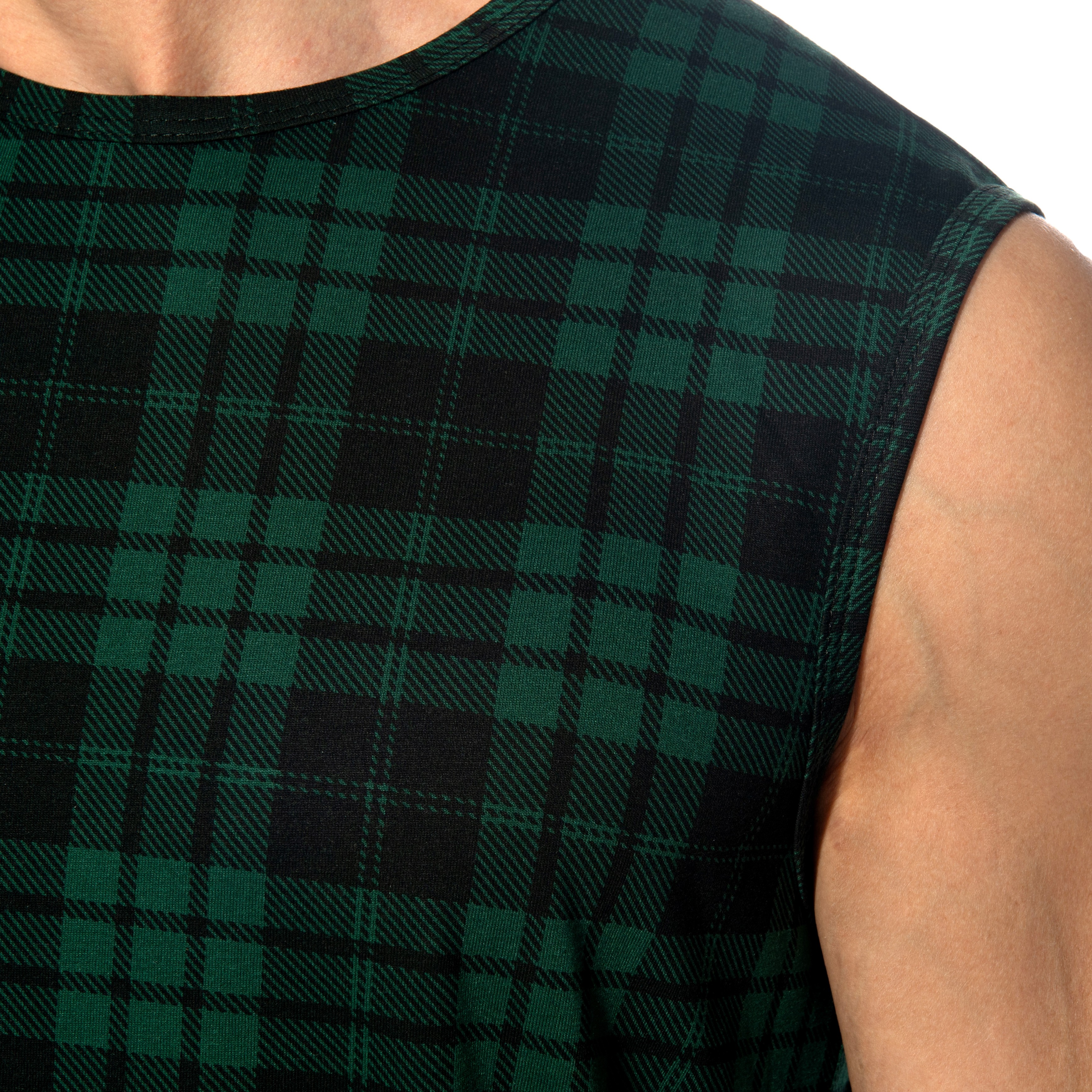 Zeig diese Dudelsäcke. Dieser Panzer ermöglicht es Ihnen, Ihre Waffen in dem sexiesten Tartanstoff der Stadt zu präsentieren. Gefertigt aus weichem und bequemem Dehnmaterial für eine perfekte Körperpassform. Das Design des breitschulterigen Tanktops hebt deine Männlichkeit hervor, als wäre es eine Tartandose. Auf der Rückseite, AD Fetish Logo aus passendem Silikon.