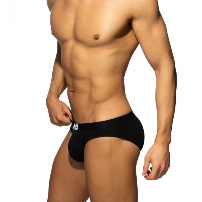 The microfibre material in elastane polyamide provides this micro slip with qualities of resistance to friction, a very fast drying, a particularly soft touch. This micro brief for men combines the finesse of the material with an unparalleled and well-maintained posture on the body of its wearer.
