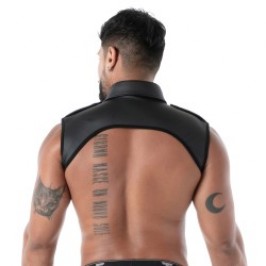Atrévete a usar un estilo asertivo, audaz y decididamente sexy. El arnés de camisa negra de neopreno con cuello de TOF Paris retoma los códigos del vestuario masculino con un toque ultra-contemporáneo de fetiche. Hecho de neopreno inodoro, este modelo sin mangas ceñe perfectamente la parte superior del torso, resaltando la constitución.