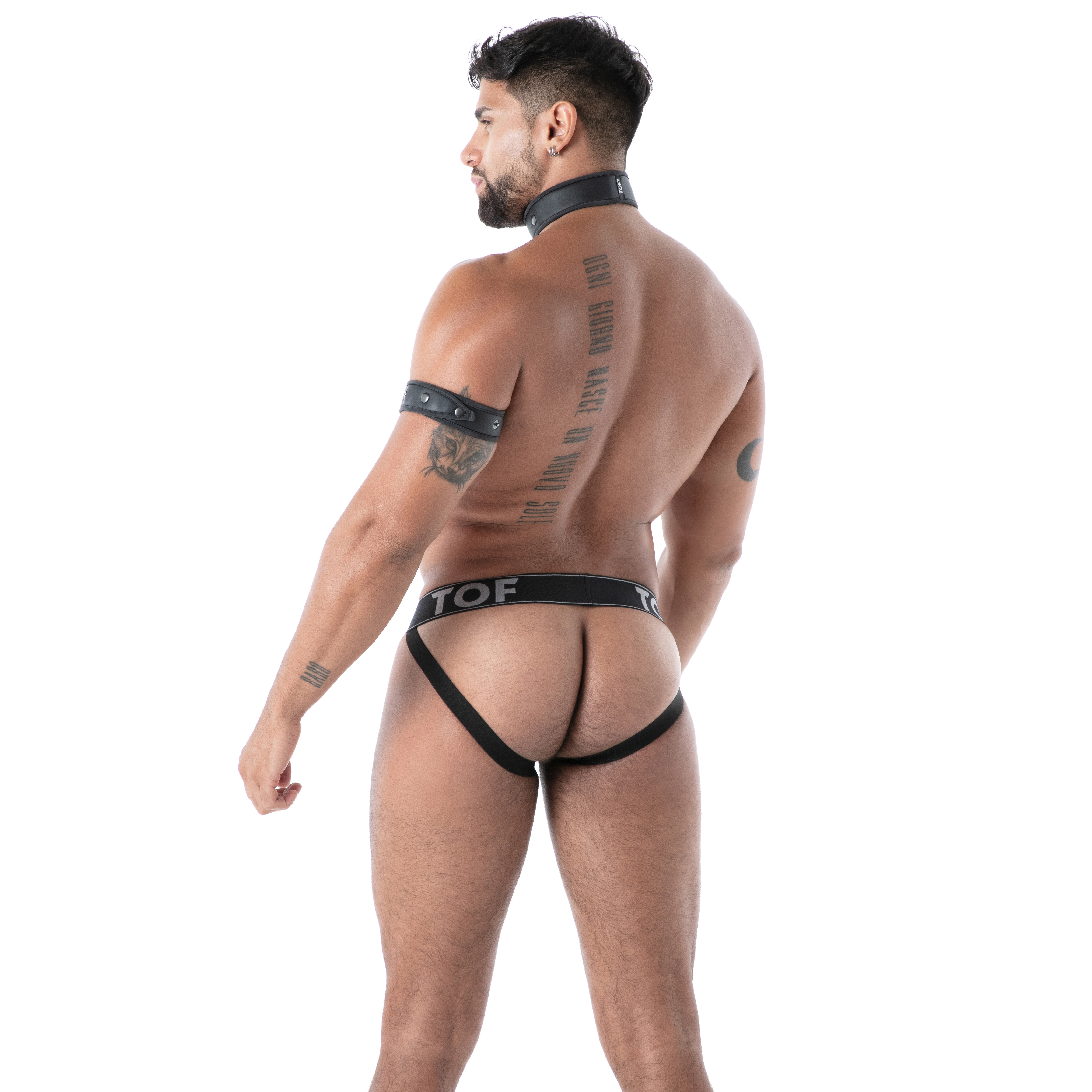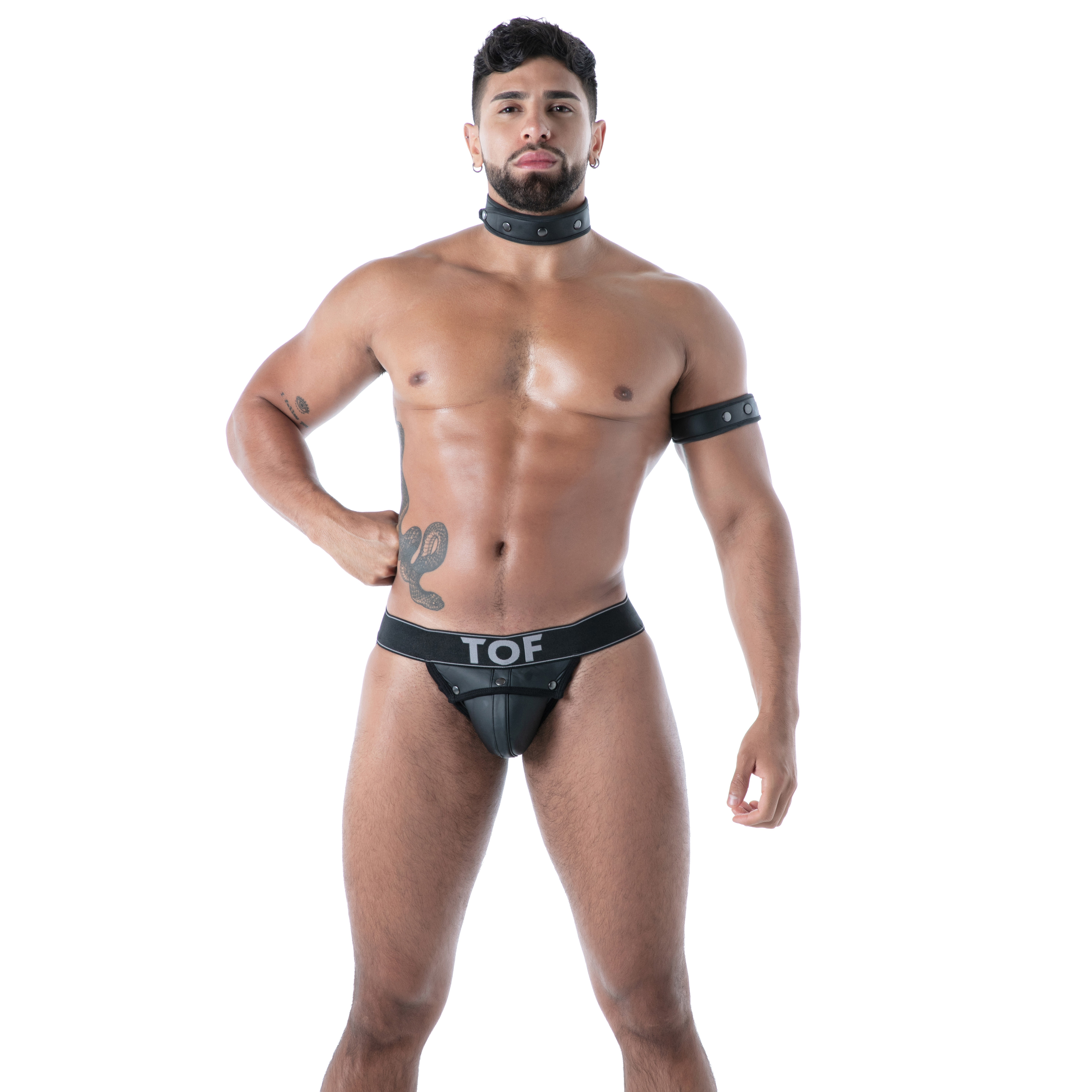 Este brazalete combina perfectamente con conjuntos como el arnés de purpurina Gold Bulldog, los pantalones de chándal Black Fetish o los Kinky Shorty Chaps para un look completo y asumido de fetiche.