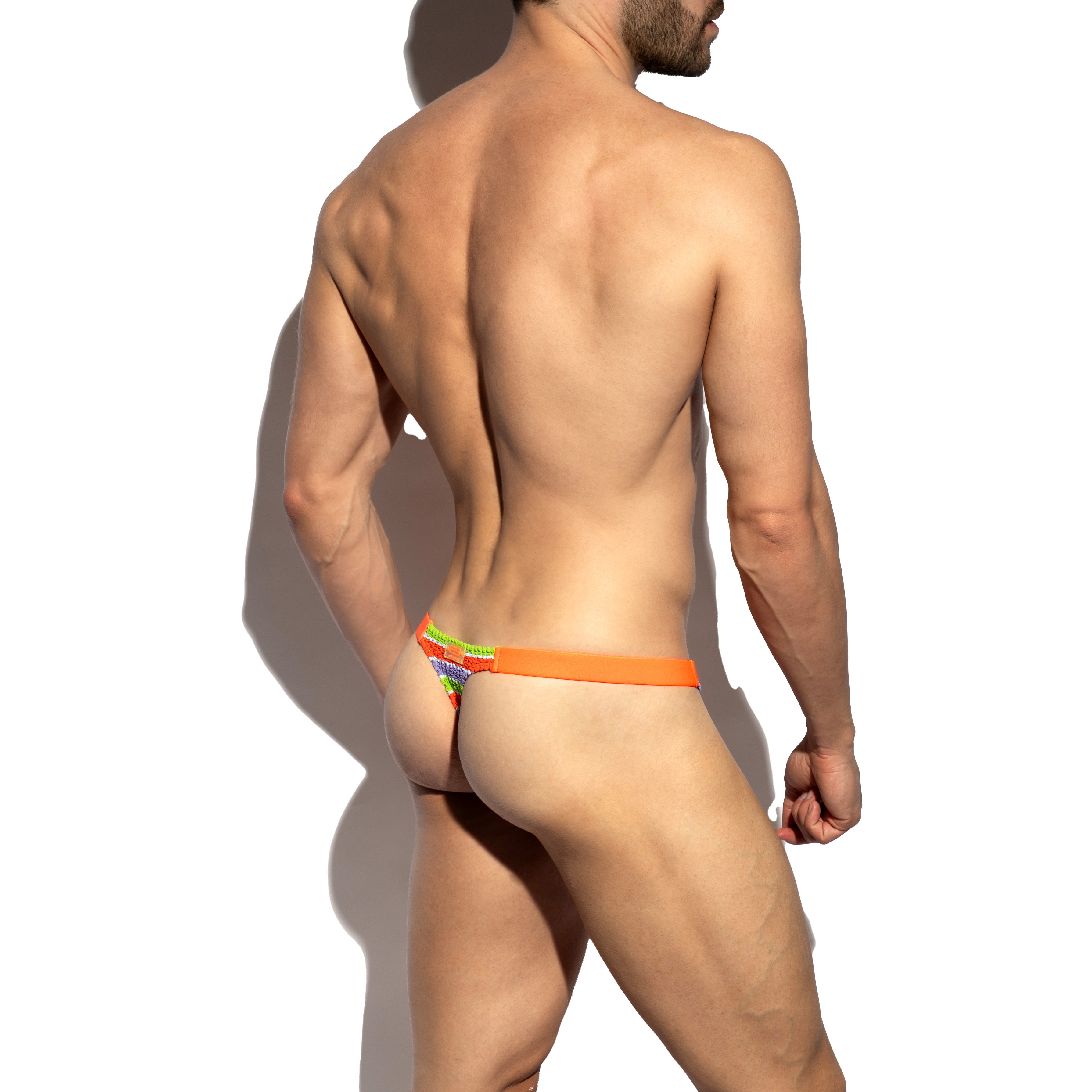 Teoría de cuerdas. Disfruta lo mínimo con este bañador de estilo retro con colores y diseños de antaño, pero con la energía ardiente de hoy. Hecha con una tela preciosa que parece una esponja, pero que en realidad es una tela extremadamente suave y muy cómoda. Elástico, colorido, atrevido y con un hilo ultra fino único, codificado por colores de delante a atrás y delineando tu preciosa ranura. Creado por Molded Technology, lo que significa que no hay costuras ni costuras, así que no hay rasguños ni picor, cariño. Logo de silicona a juego en la parte trasera.