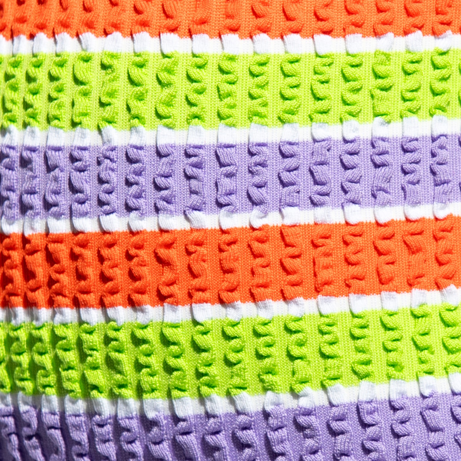 Una broma retro. Sumérgete en este bañador de estilo retro con colores y diseños de antaño, pero con la energía ardiente de hoy. Hecha con una tela preciosa que parece tela de felpu, pero en realidad es una tela extremadamente suave y muy cómoda. Elástico, colorido, atrevido y con tiras únicas codificadas por colores en los laterales que fluyen hacia atrás - , ¿qué más se puede pedir en este calor discoteca? Creado por Molded Technology, lo que significa que no hay costuras ni costuras, así que no hay rasguños ni picor, cariño. Logo de silicona a juego en la parte trasera.