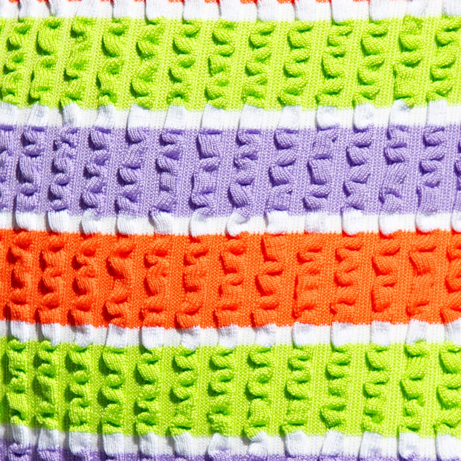 Una broma retro. Sumérgete en este bañador de estilo retro con colores y diseños de antaño, pero con la energía ardiente de hoy. Hecha con una tela preciosa que parece tela de felpu, pero en realidad es una tela extremadamente suave y muy cómoda. Elástico, colorido, atrevido y con tiras únicas codificadas por colores en los laterales que fluyen hacia atrás - , ¿qué más se puede pedir en este calor discoteca? Creado por Molded Technology, lo que significa que no hay costuras ni costuras, así que no hay rasguños ni picor, cariño. Logo de silicona a juego en la parte trasera.