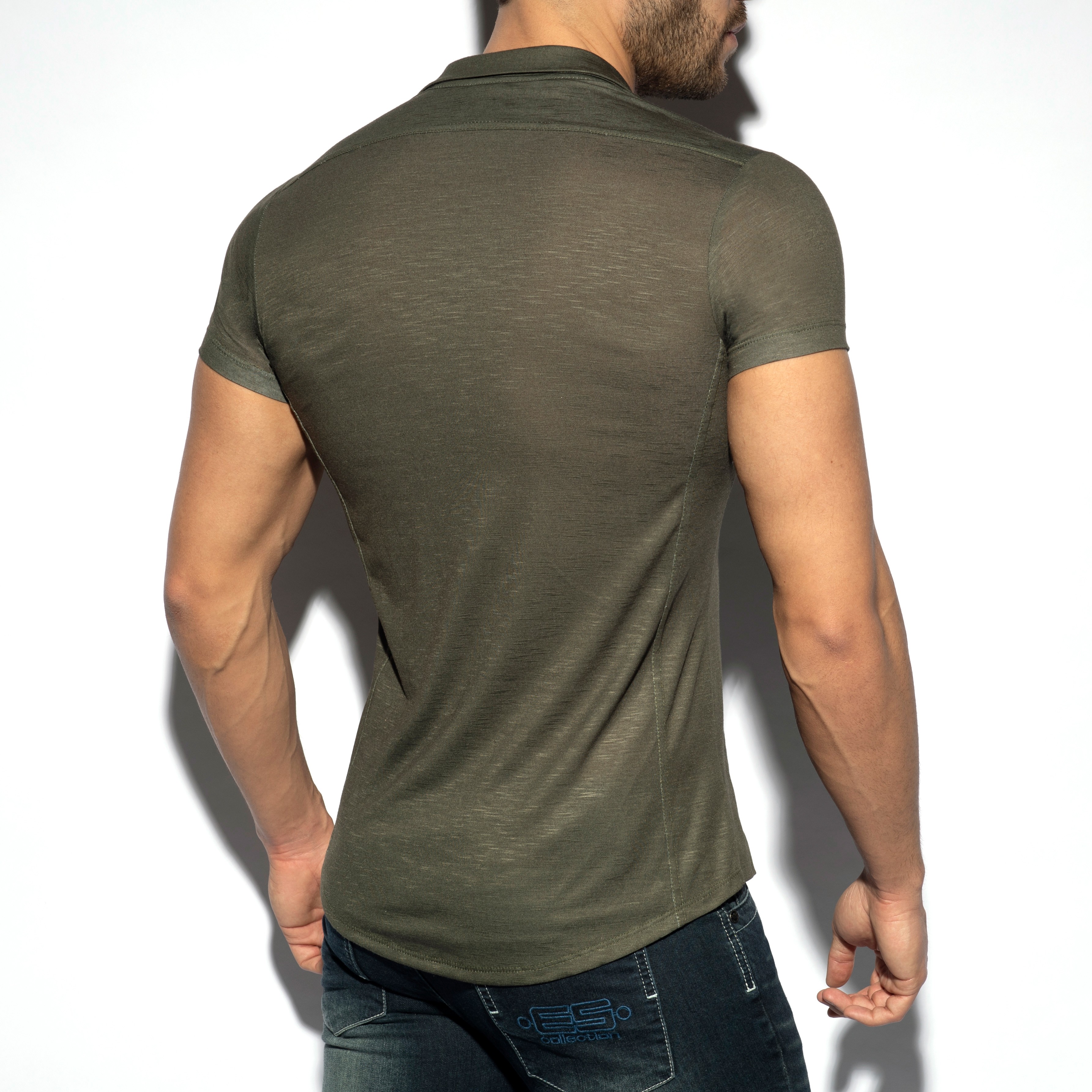Camisa slim fit confeccionada en un tejido fresco e innovador. Cierre de botones y ajuste delgado y sexy. Logotipo estampado de la colección ES en el lado izquierdo del pecho y broche metálico en la manga izquierda.