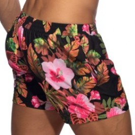 Provocador de pétalos. Va a ser un dulce problema para ti con estos pantalones cortos de estampado floral tan sexys. Con una mirada ligeramente translúcida, la tentación está ahí de ir a la fuerza - y ser tan libre como representa este hermoso patrón floral. Impresionantes pantalones cortos combinados de colores, ligeros y listos para el verano con gráficos navideños impecables. Una tela simplemente preciosa, ligera como el aire, en tonos rosas sobre un fondo negro - le da un aspecto majestuoso, aireado, transpirable y floral. Material elástico en todo alrededor para dar ese ajuste y silueta perfectos. Cintura elástica con dos cordones a juego de color - , cada uno con ojal metálico y cierre al final. Dos bolsillos laterales. Logotipo de silicona AD a juego en el frontal.