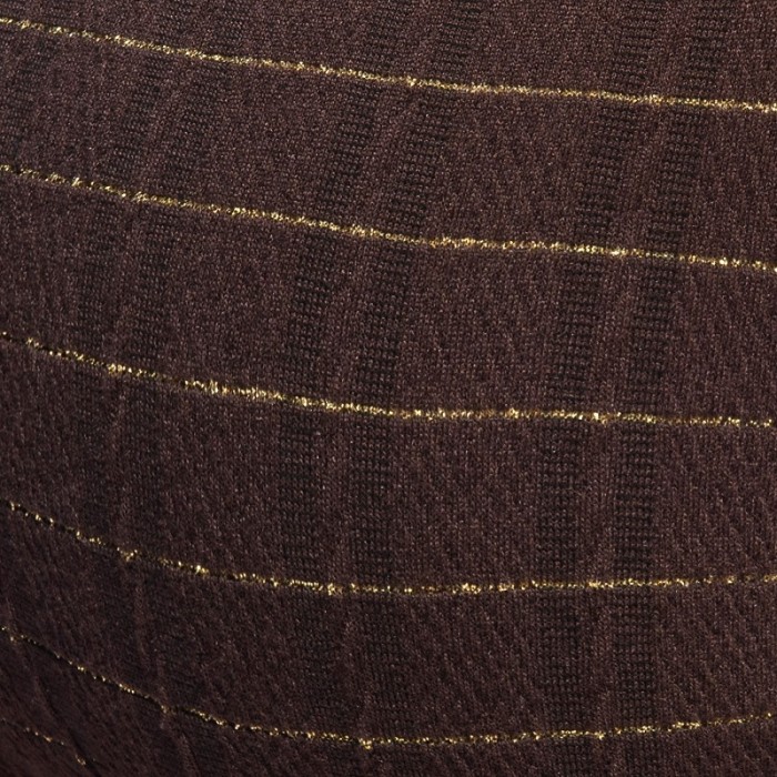 Precioso tejido laminado, con un efecto de tacto exquisitamente suave y detalles metálicos en contraste.