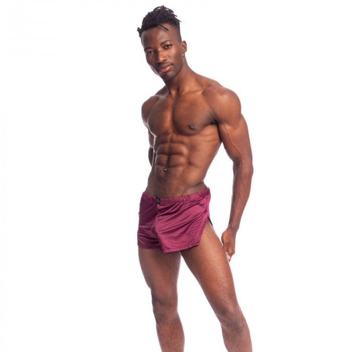 Las aberturas laterales convierten estos pantalones cortos en una pieza arquitectónica. Crean un movimiento elegante al caminar, revelando sutilmente las piernas y proporcionando una ventilación natural. El ajuste equilibrado es adecuado tanto para la relajación como para momentos más activos en casa. La goma cubierta con viscosa sedosa elimina cualquier molestia en la cintura. El profundo color burdeos evoca sofisticación y sensualidad controlada. Cuidado: un lavado suave a 30°C preserva la fluidez y las aberturas. Pantalones cortos de seda para hombre que combinan atrevimiento gráfico y absoluta comodidad.