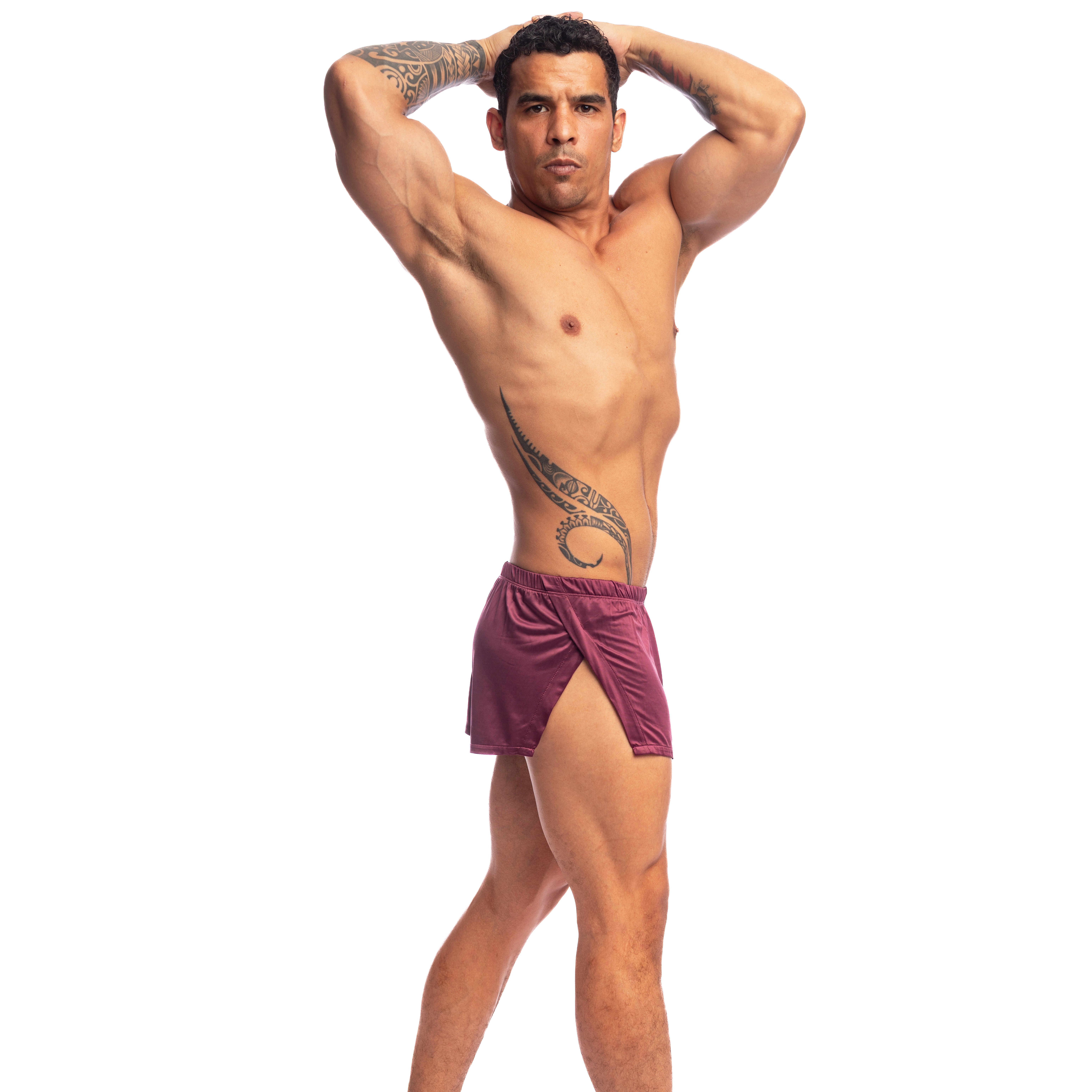 El ultraminimalismo deportivo se encuentra con la sensualidad de la seda. Los Silk Touch Ultra Mini Sporty Style Lounge Shorts reinventan los pantalones cortos de salón masculino en una prenda atrevida donde la corta longitud y el material lujoso crean un equilibrio sofisticado. Esta creación L'Homme Invisible asume una masculinidad moderna.