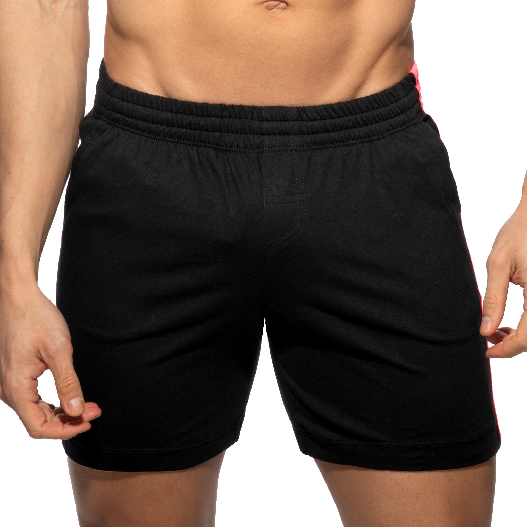 Bandas que te hacen bailar... O ir al gimnasio, o correr, o relajarse. Estos pantalones cortos polivalentes te permiten hacerlo todo: desde zancada hasta tumbarse, bailar o levantar peso muerto. Una tela bellamente suave y flexible, hecha del algodón 100% más puro, en combinaciones de colores impresionantes. Raya de logotipo de ADDICTED audaz, enérgica y duradera que recorre un lado, complementando los colores de los materiales. Cinturilla súper elástica con dos correas interiores para un ajuste perfecto. Dos bolsillos laterales y uno trasero.
