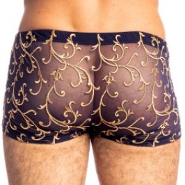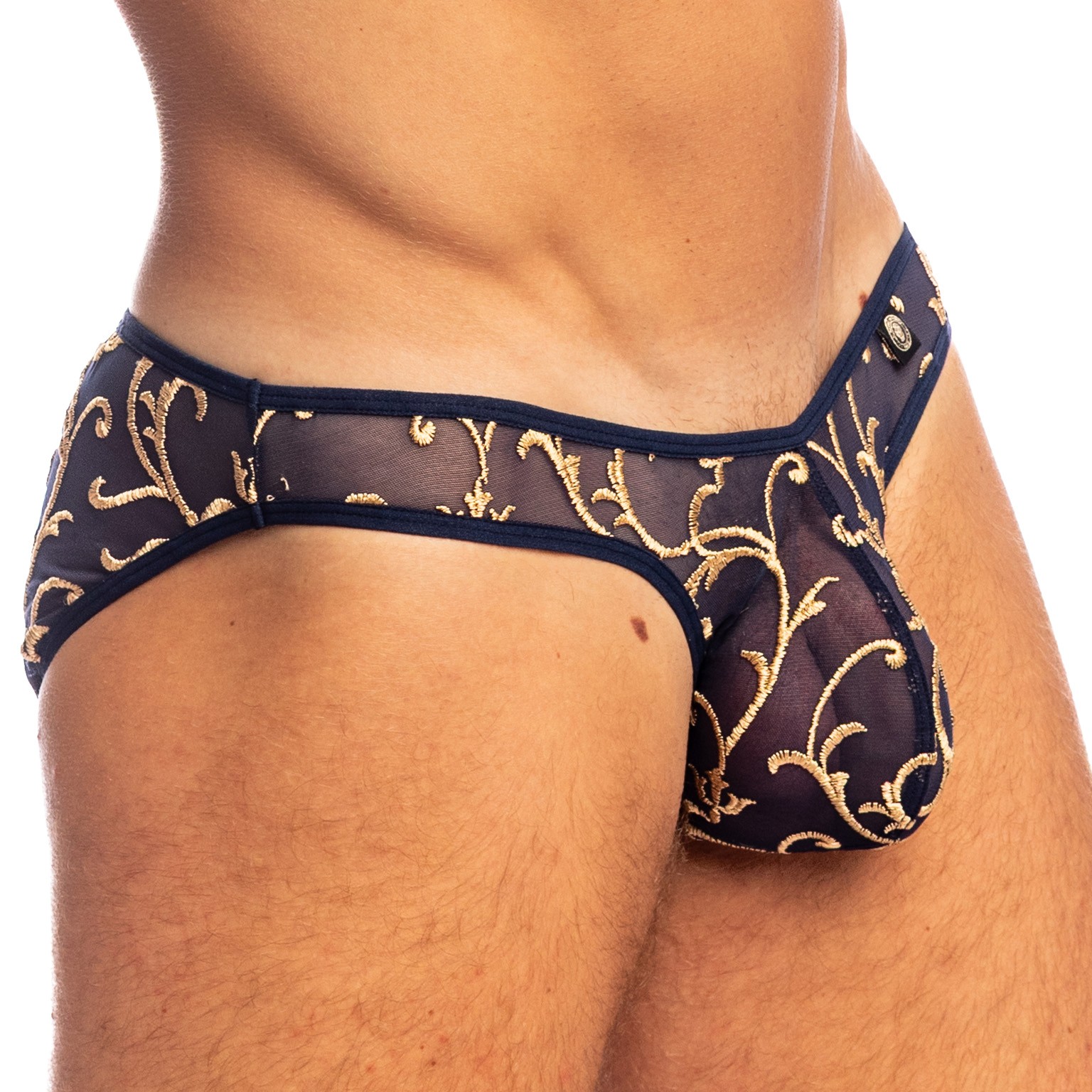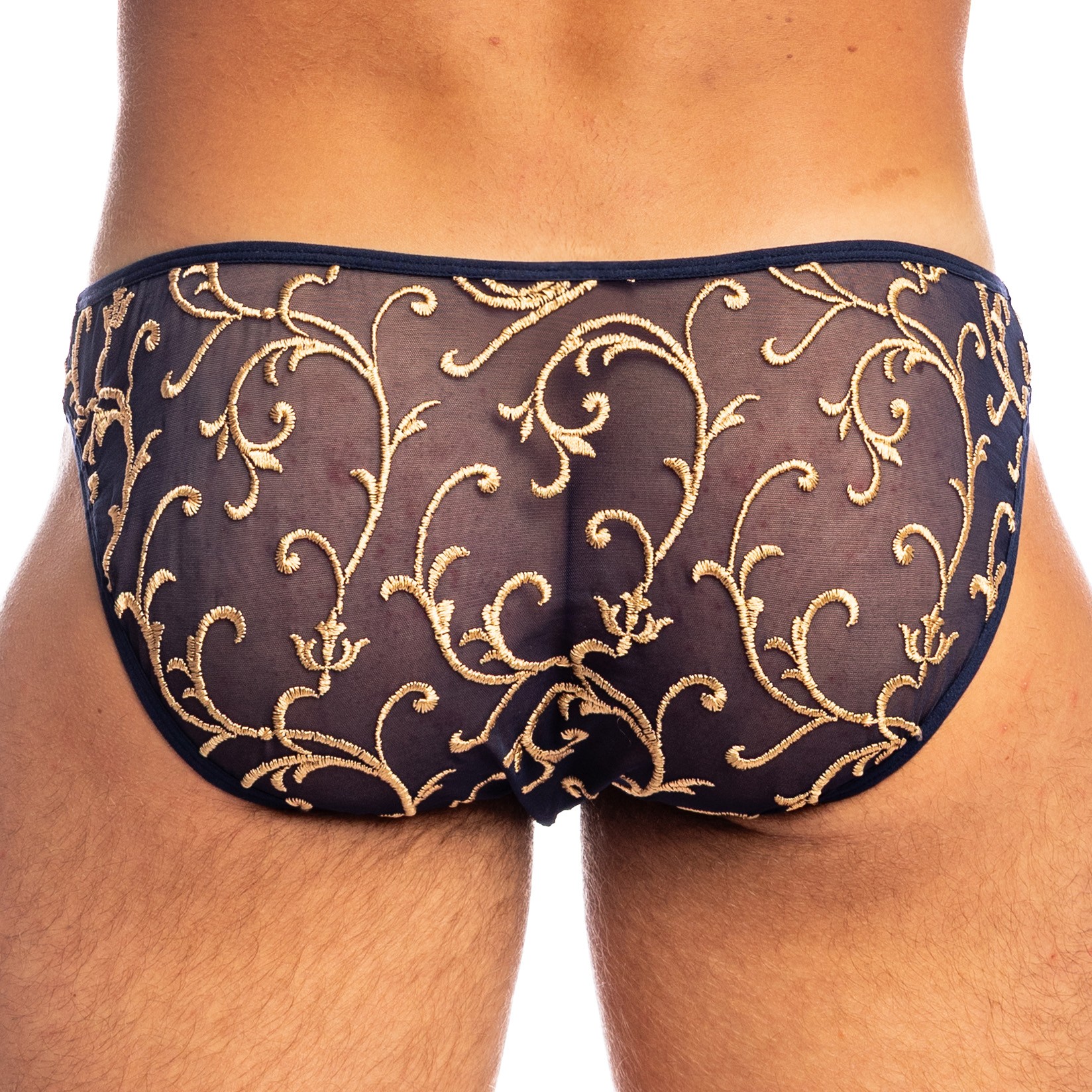El Nuit Baroque Push-up Hipster reinventa la seducción masculina en toda su majestuosidad. Elaborado con tul azul medianoche bordado con arabescos dorados, combina el esplendor barroco con la precisión de un corte contemporáneo.