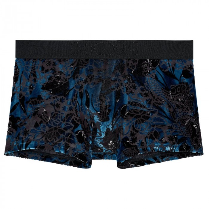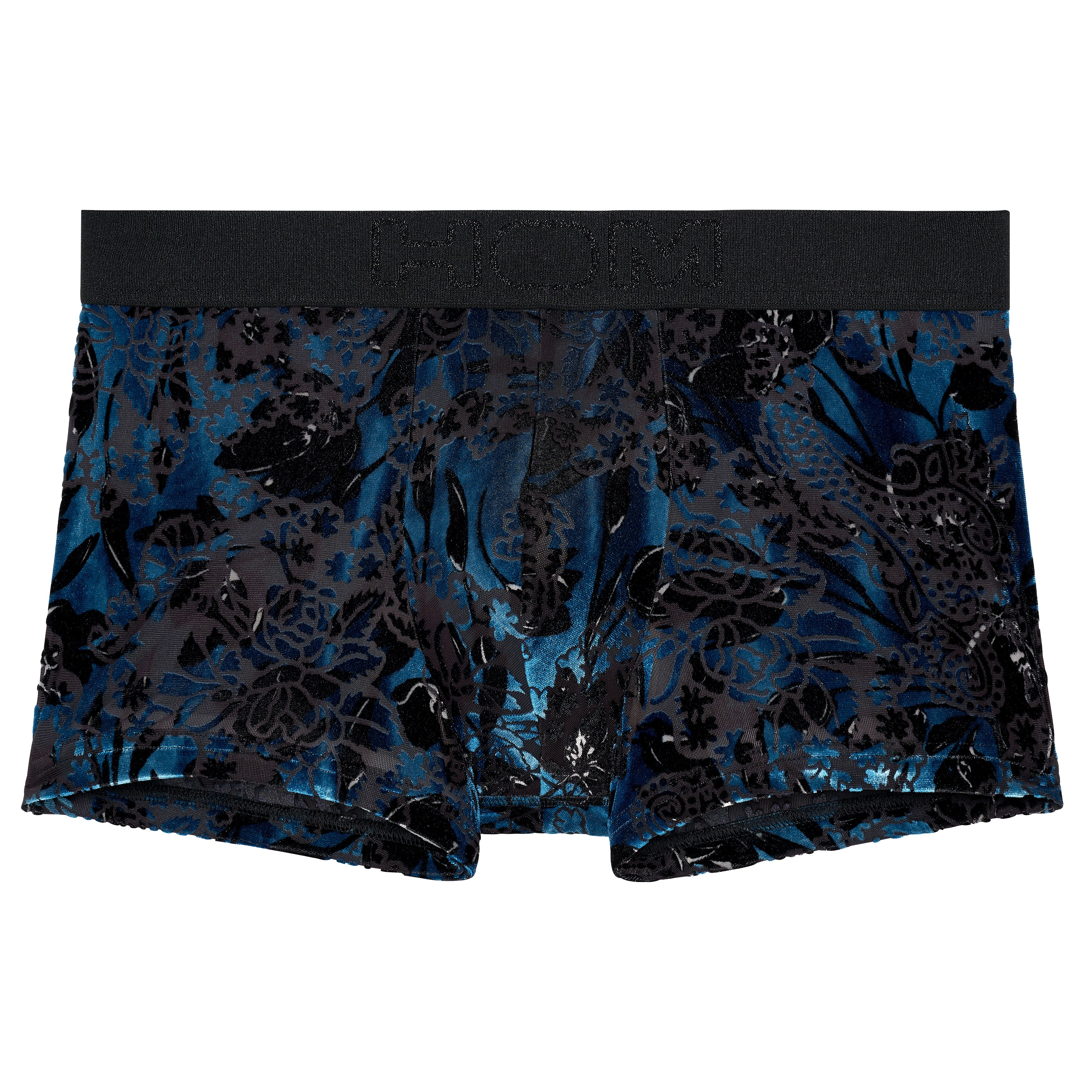 Le boxer court homme Fremont est une véritable déclaration de style. Réalisé en velours dévoré, il offre une texture somptueuse et un toucher sensuel d’une rare intensité. Sa matière douce et légèrement brillante capte la lumière, rappelant les néons éclatants de Fremont Street à Las Vegas. Doté d’un voile élastique inséré dans l'ourlet de bas de jambe pour un maintien optimal, il intègre une large ceinture siglée HOM rehaussée d’un fil lurex, qui souligne son caractère luxueux. Les motifs baroques tissés dans la matière renforcent l’esprit glamour et opulent de cette pièce unique de lingerie homme. Le Fremont est un boxer court pensé pour les amateurs de lingerie raffinée, où le confort rencontre la séduction.