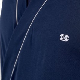 Le peignoir pour hommes TRANSAT est un peignoir long, de coupe droite, bleu marine.