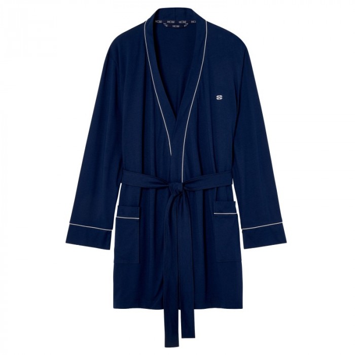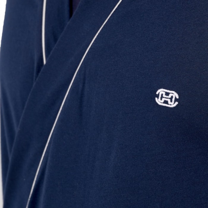 Le kimono court pour homme Rafael revisite le loungewear masculin dans une version moderne et sophistiquée. Réalisé en mélange de coton et de modal, il offre une matière fluide et soyeuse, d’un confort remarquable. Sa coupe croisée se noue à la taille pour un ajustement parfait, tandis que la broderie sur la poitrine et le passepoil contrasté apportent une note élégante. Son coloris bleu nuit profond souligne la sobriété et le raffinement de cette pièce de homewear, idéale pour les moments de détente à la maison ou le lever du matin.