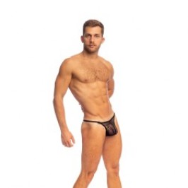 Le tulle noir transparent non doublé célèbre la nudité comme arme de séduction sophistiquée. Loin d'être simplement sexy, cette transparence radicale devient un statement de créateur audacieux : le corps masculin révélé à travers le tulle devient œuvre d'art vivante. Les broderies or représentant des épis de blé ajoutent une dimension précieuse, évoquant les champs dorés au soleil couchant. Élément unique : la broderie est non placée, ce qui signifie que chaque pièce présente une composition différente de motifs. Votre string est véritablement unique.