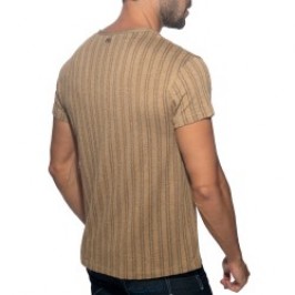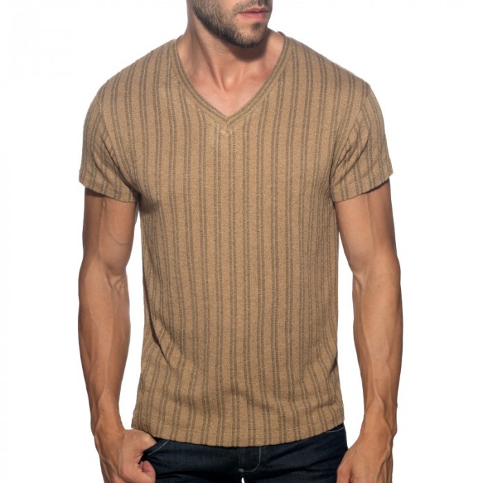 T-shirt frais et élégant avec un col en V réalisé dans un tissu flammé de toute beauté.