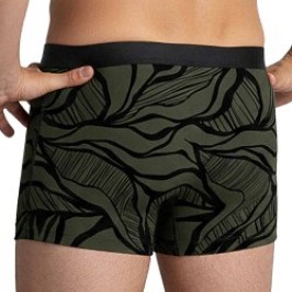 Original and fun, the Indian Creek men's boxer briefs plunge us into a lush plant universe. Its multicolored leaf patterns make up a tropical fresco inspired by the exotic gardens of Miami. Made from soft, silky and breathable microfiber, these men's boxer briefs combine flexibility and support. Its supportive elastic integrated into the front shell guarantees perfect anatomical support, while the elastic fleece inserted in the hem of the lower leg ensures optimal stability, even when moving. Thanks to its stretchy fabric that does not wrinkle, it retains its shape and shine over time. The HOM belt, wide and seamless on the back, hugs the body without rolling. These men's boxer briefs are an ode to nature and colour, a comfortable undergarment, for a trendy tropical chic look.