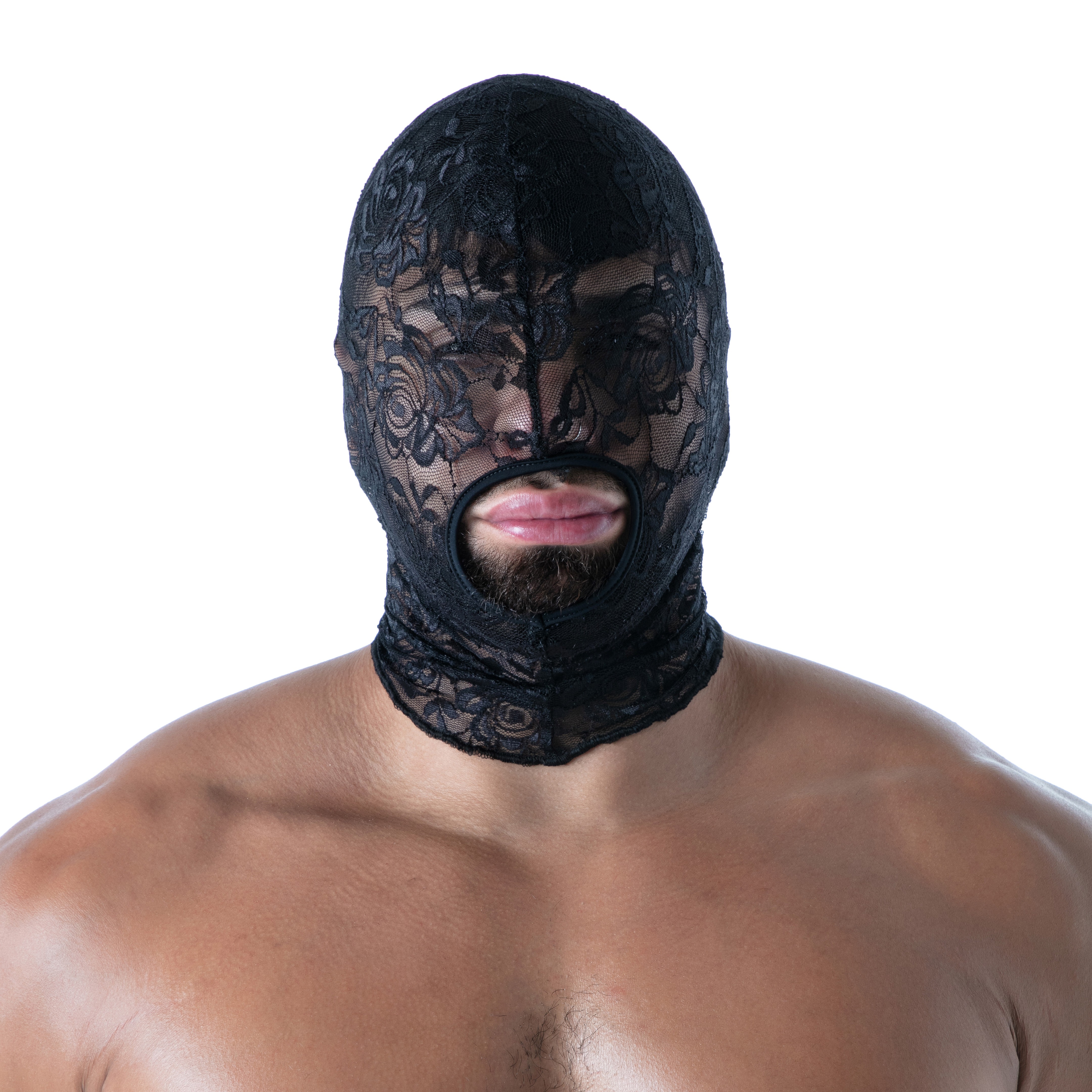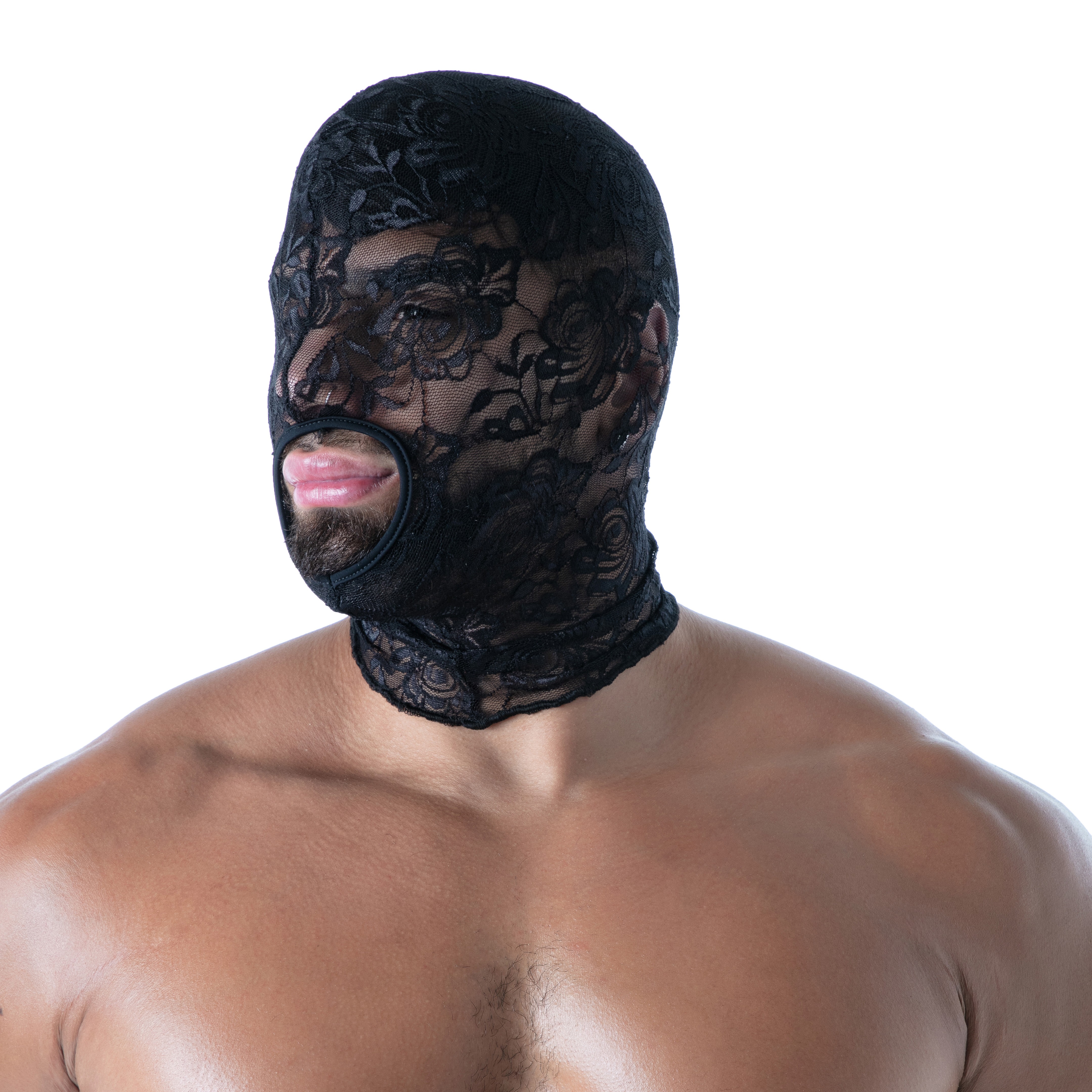 This lace BDSM balaclava is for lovers of mysterious looks or fetish scenarios. Whether you are a fan of the dominant or submissive role, or simply a lover of sexy men's lingerie, this piece fits naturally into an erotic wardrobe. It's also a bold addition to other fetishwear pieces: wear it with a men's leather harness or over a full leather outfit for a seductive contrast.