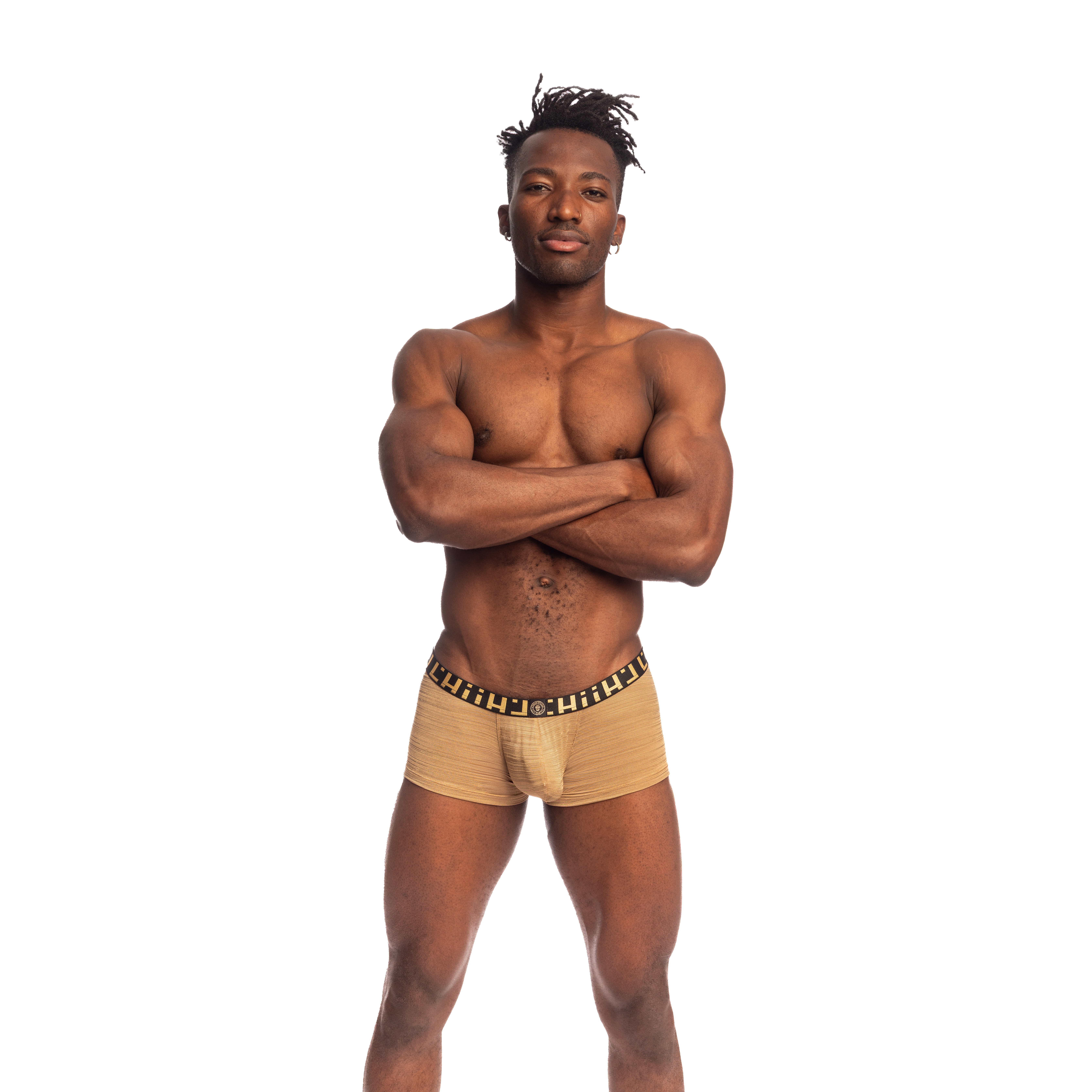 The black and gold elastic immediately signs the visual identity of these luxury men's boxer briefs. The Hipster Push River Gold reinvents men's underwear with graphic elegance where push-up comfort and architectural aesthetics are harmoniously combined.