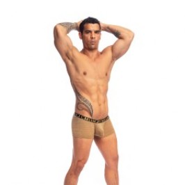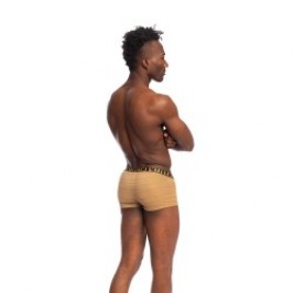 How to wear your Hipster Push River Gold? These men's push-up boxer briefs are perfect for everyday work as well as elegant outings. Its fitted cut remains invisible under suit trousers, while its refined aesthetic makes it a seductive asset. The thermoregulatory microfiber adapts to all seasons. Easy care: machine wash at 30°C preserves golden shine and elasticity. A high-end men's boxer shorts that redefine the intimate men's wardrobe.