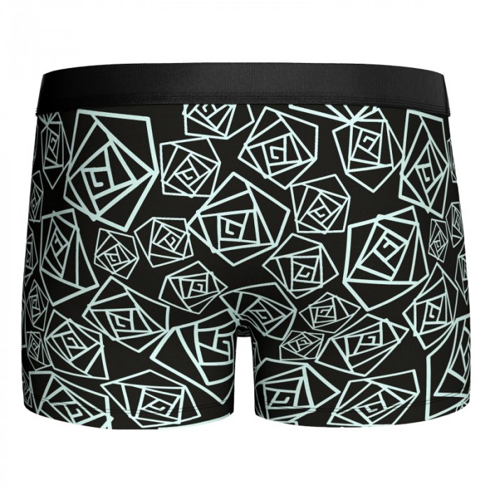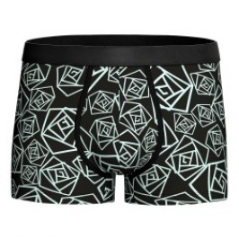 The LANZAROTE men's boxer shorts are short boxer briefs made of polyamide elastane fabric. On a black base, the print is adorned with large sheets of grey and white papyrus.