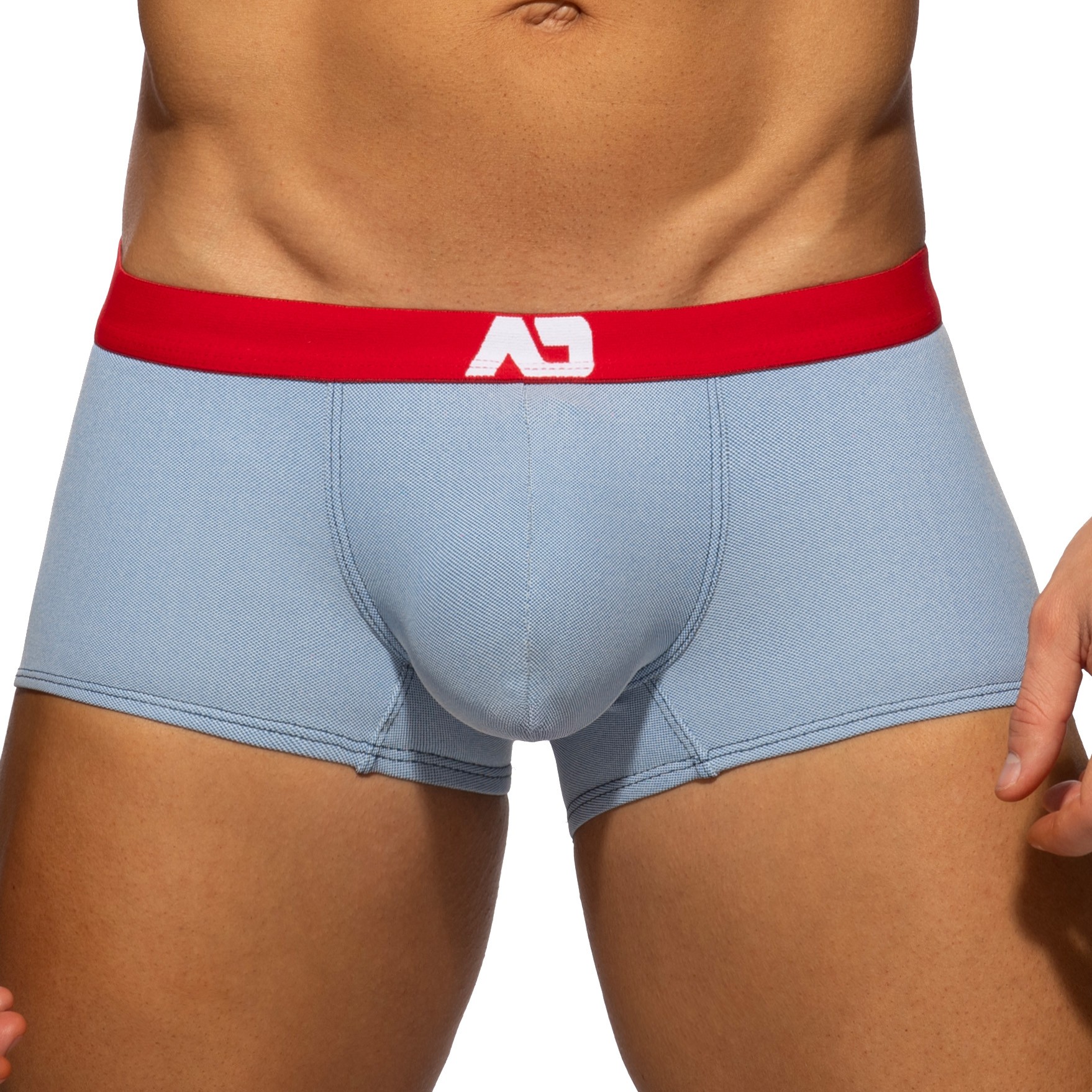 Feel the difference. Exquisite fabric that you will feel everywhere. Wrap yourself in these stunning underwear made with the material Pique - it's the ultimate feeling against your skin. Made from soft, supple materials... magnificent! Has a denim look and vibe, but completely cloudy to wear. Newly designed boxer briefs with a unique colour look for the entire garment - with the exception of a beautiful contrasting belt. Sleek, thinner and super stretchy waistband for a perfect fit. AD logo on the front of the waistband. Large front pocket.