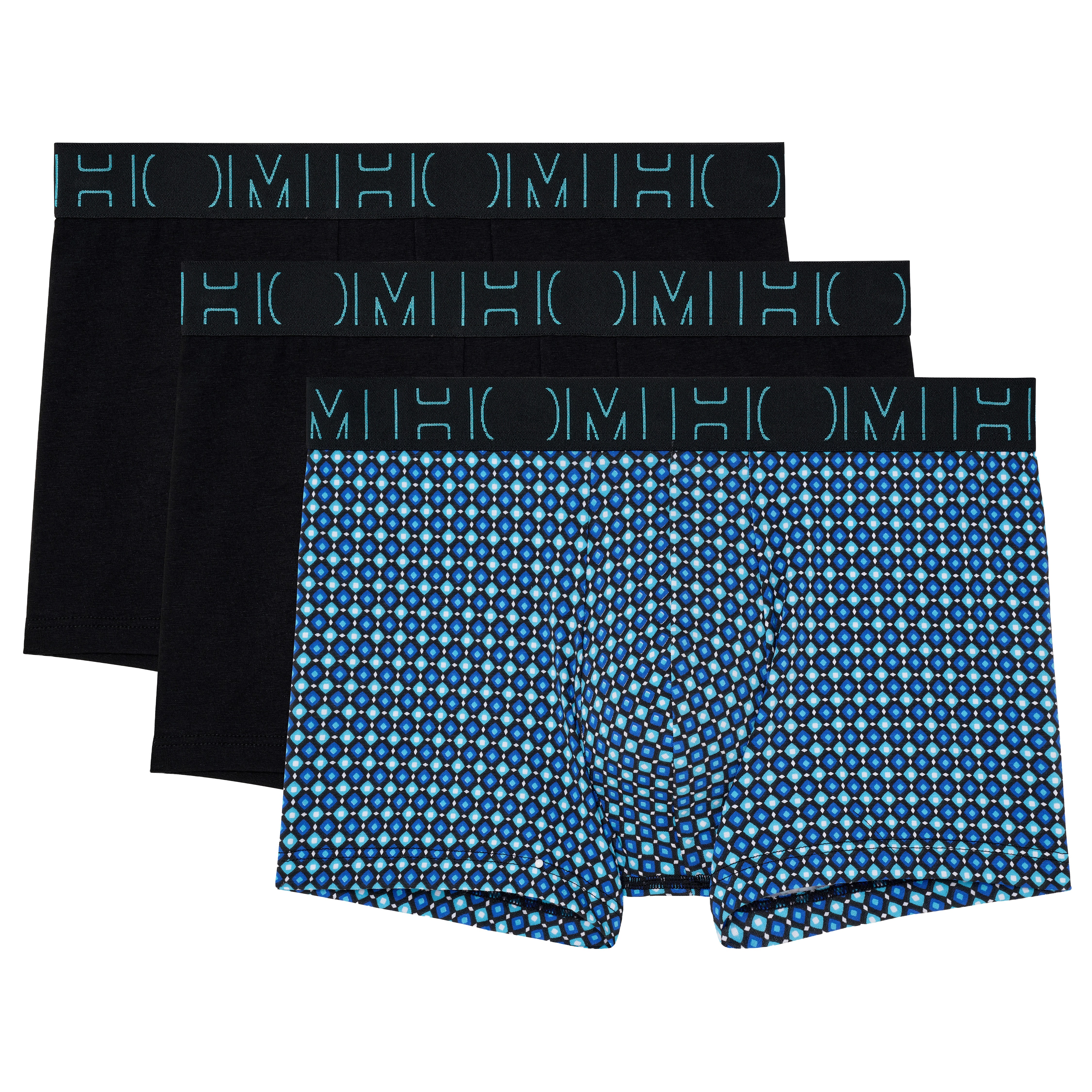 The Marco #2 multipack brings together three men's boxer briefs combining elegance and comfort. Made from soft cotton with a touch of elastane, they offer natural support and optimal freedom of movement. This set includes two plain black models and boxer briefs with a fancy blue "tie" print, to alternate between sobriety and originality according to the mood of the day. The soft and supple HOM-style logo belt adds a modern touch while ensuring an impeccable fit. A set of 3 practical and stylish underwear, designed for men looking for versatile, comfortable and elegant underwear to wear every day.