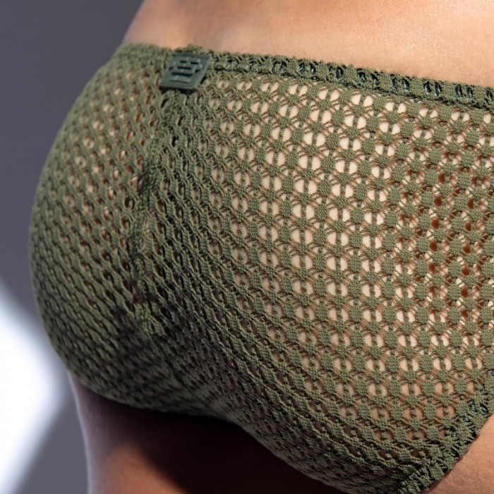 The cut of the HOMRUN brief is indented on the hip, with a thinner waistband than for other models of briefs. This micro form of men's underwear offers flexibility and great freedom of movement, it also reveals the shapes of the male anatomy and gives the underwear and the wearer a sexy look.