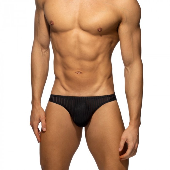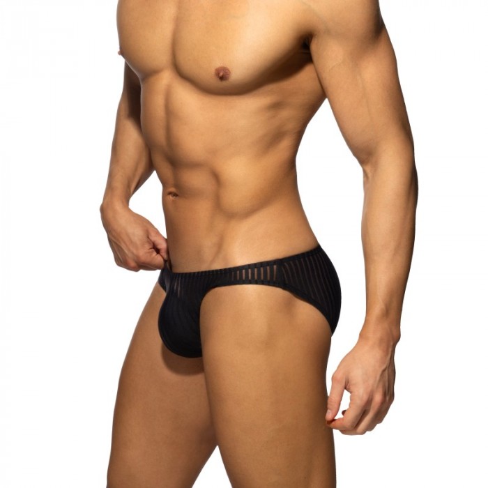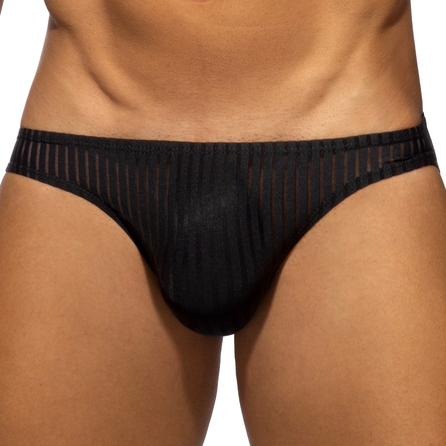 Read between the lines. Look between these vertical stripes and you'll see a lot more. Super sexy striped effect fabric that shows what's hidden inside, thanks to its contrasting solid color line, combined with a more subtle sheer midline. Seductive, daring - just the way you like it - in a super stretchy material for a perfect fit. Made from molded technology: which means no seams or stitches, so no scratches or itching. Matching silicone AD logo on the back.
