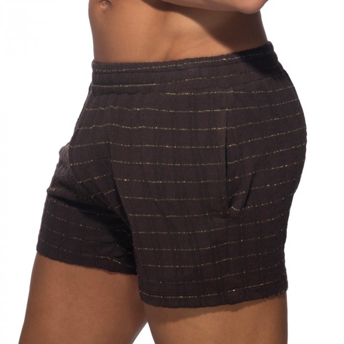 Discrete. Exaggerated. Both. That's because these shorts are both subtle and extra at the same time. It's a fabric Opal of desire that sparkles when you walk - sparkles in all the right places with these unique shorts. A beautiful fabric has a subtly raised cross design interposed with shimmering, golden thread patterns. Shimmering gold threads all along the line, including a unique line layout built into the super stretchy waistband. Double drawstring bands hidden inside, to provide a perfect fit. Super stretchy full-length material to show off all your jewelry and gems. Two side pockets, to hide more of your precious items.