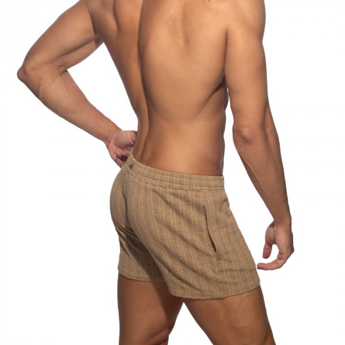 Side look, you will appreciate the bands on the legs. Equipped with an elastic belt and a fit cord, these shorts will adapt perfectly to your figure.