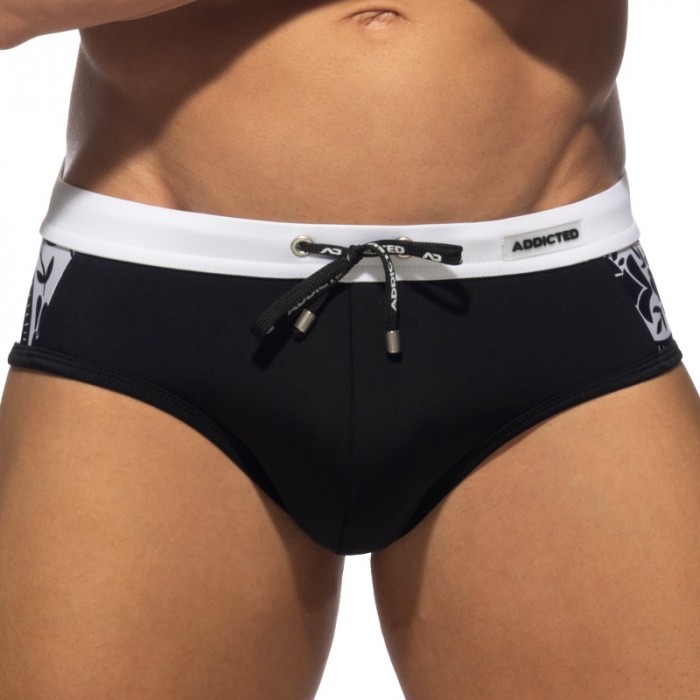 Barefoot, but Candle. The two can actually go hand in hand, like when your helicopter drops you off at the private beach... A very sophisticated swimsuit for the "super-star who goes incognito" that you are. Gorgeous high-end black and white swimwear from fashion house, dripping with fresh rosé and style. Stunning side abstract design on super stretch fabric. Two branded drawcords on the front for the ultimate fit, made with metal grommets and metal end ties.