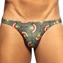 (Pea) Cocky. Strut - and move up with your feathers. And... Ego even higher in this beautifully colored custom swim thong. Bring out your inner Peacock as you strut your stuff all over the beach and pool with everyone in your eyes. Show off with a cheeky revealing back like the big bird does... with a stunning all-over peacock-inspired print in stretch fabric. Made from molded technology: which means no seams or stitches, so no scratches or itching - these feathers are not going to bore you at all! Large front pocket.