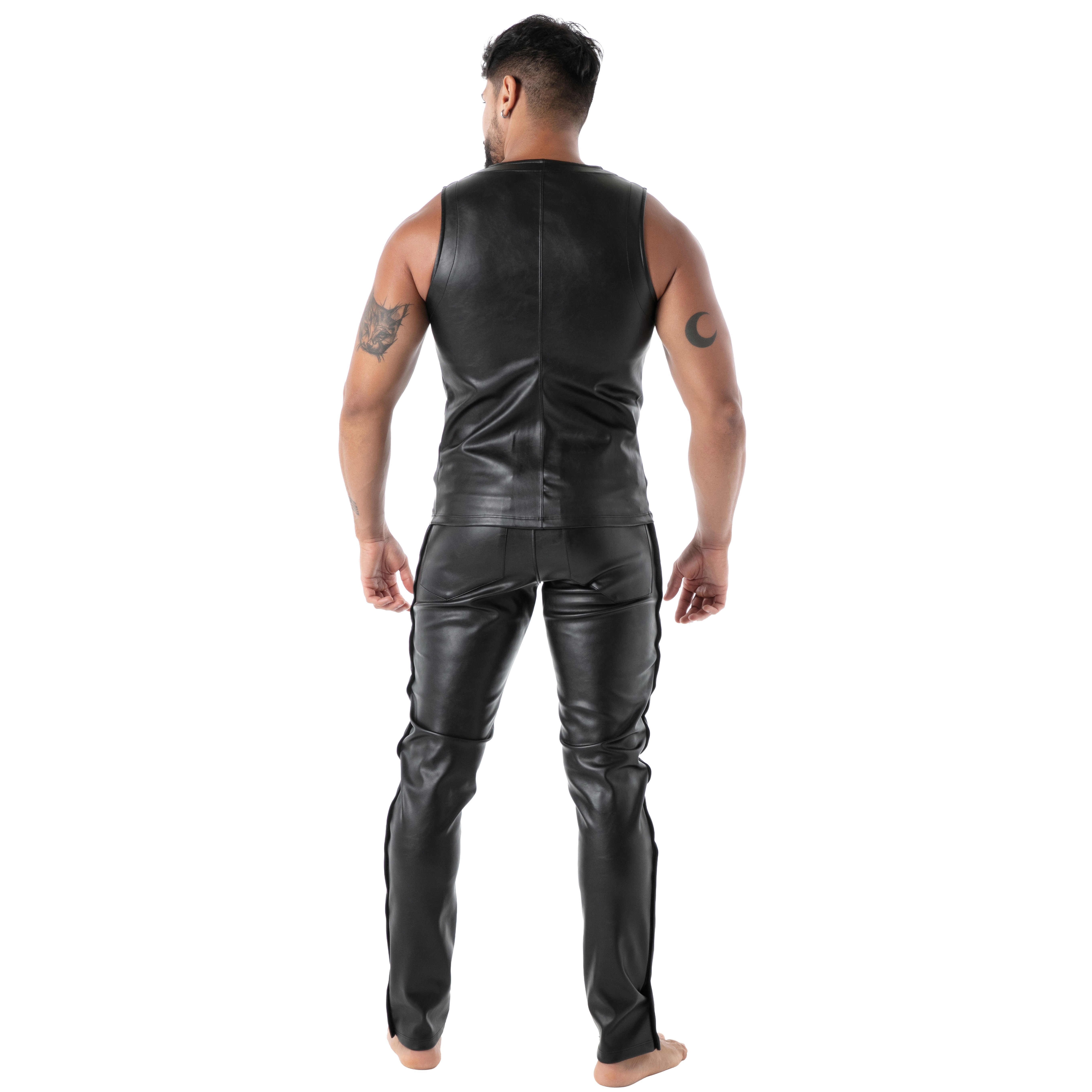 For a complete look, you can pair it with fetish underwear, a jockstrap, faux leather pants or slim jeans. For a 100% clubwear style, combine it with coordinating vinyl zipped boxer briefs.