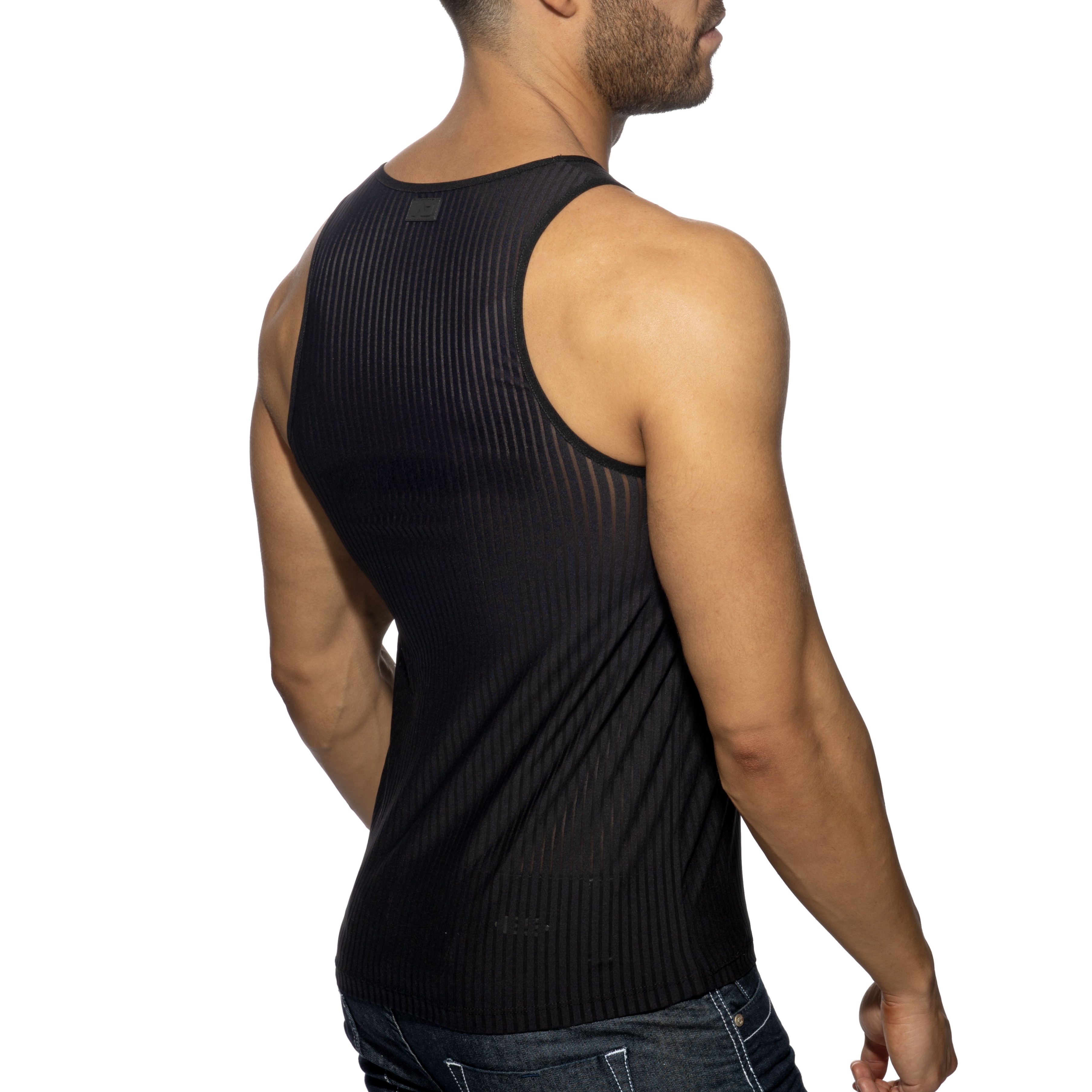 Power Stripes. Not only does this tank show off your weapons, but it also shows off your shells and torso tips inside! You see, this beautiful striped fabric has a solid vertical line, next to an alluring and transparent line: it's a super sexy and beautiful tank top. Stretchy material that provides a perfect shape, silhouette and fit. AD logo on the back in color-matched silicone.