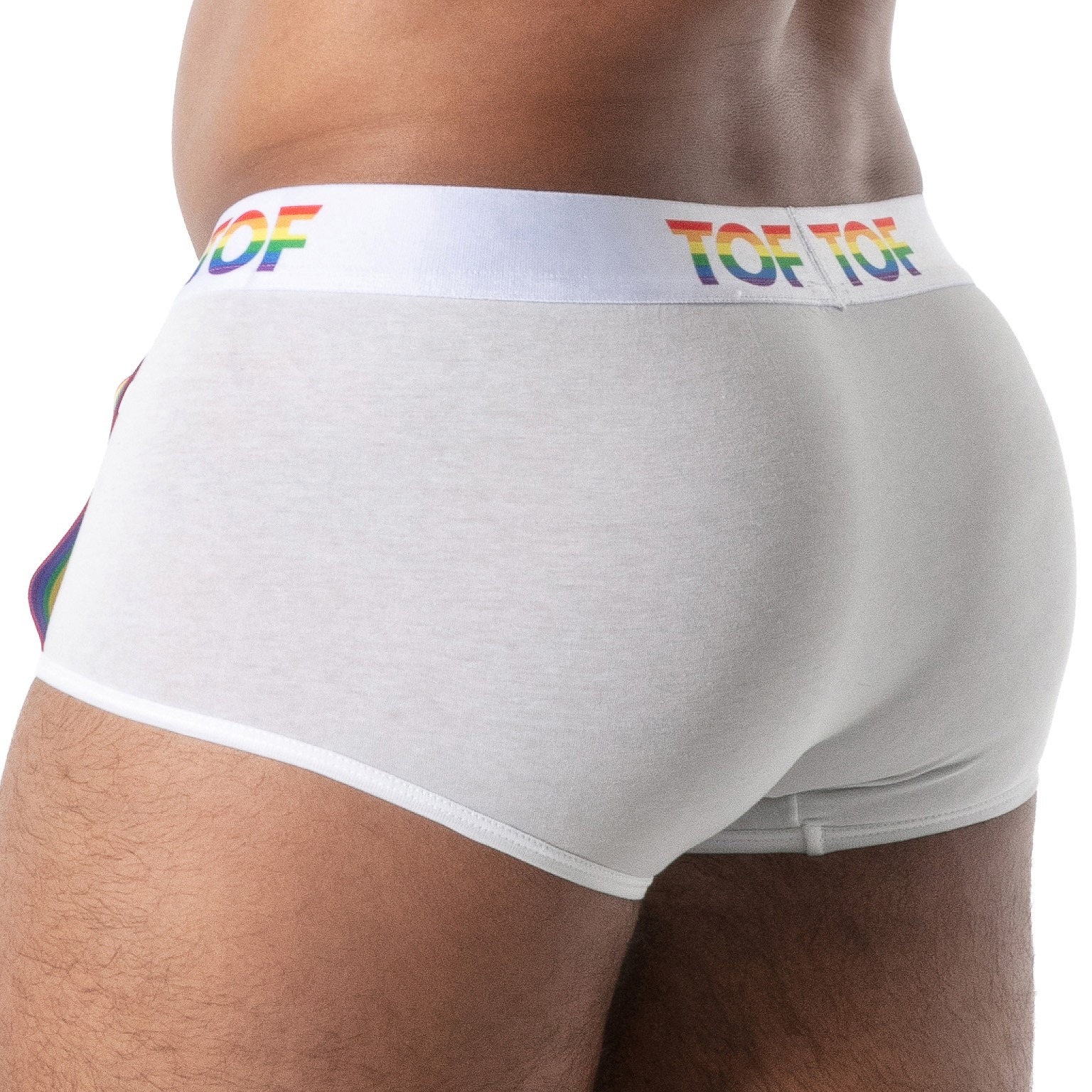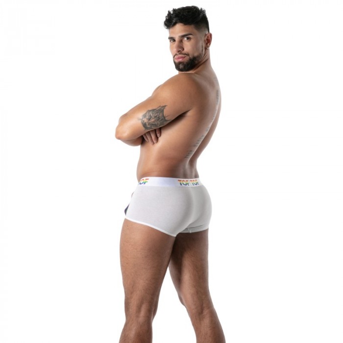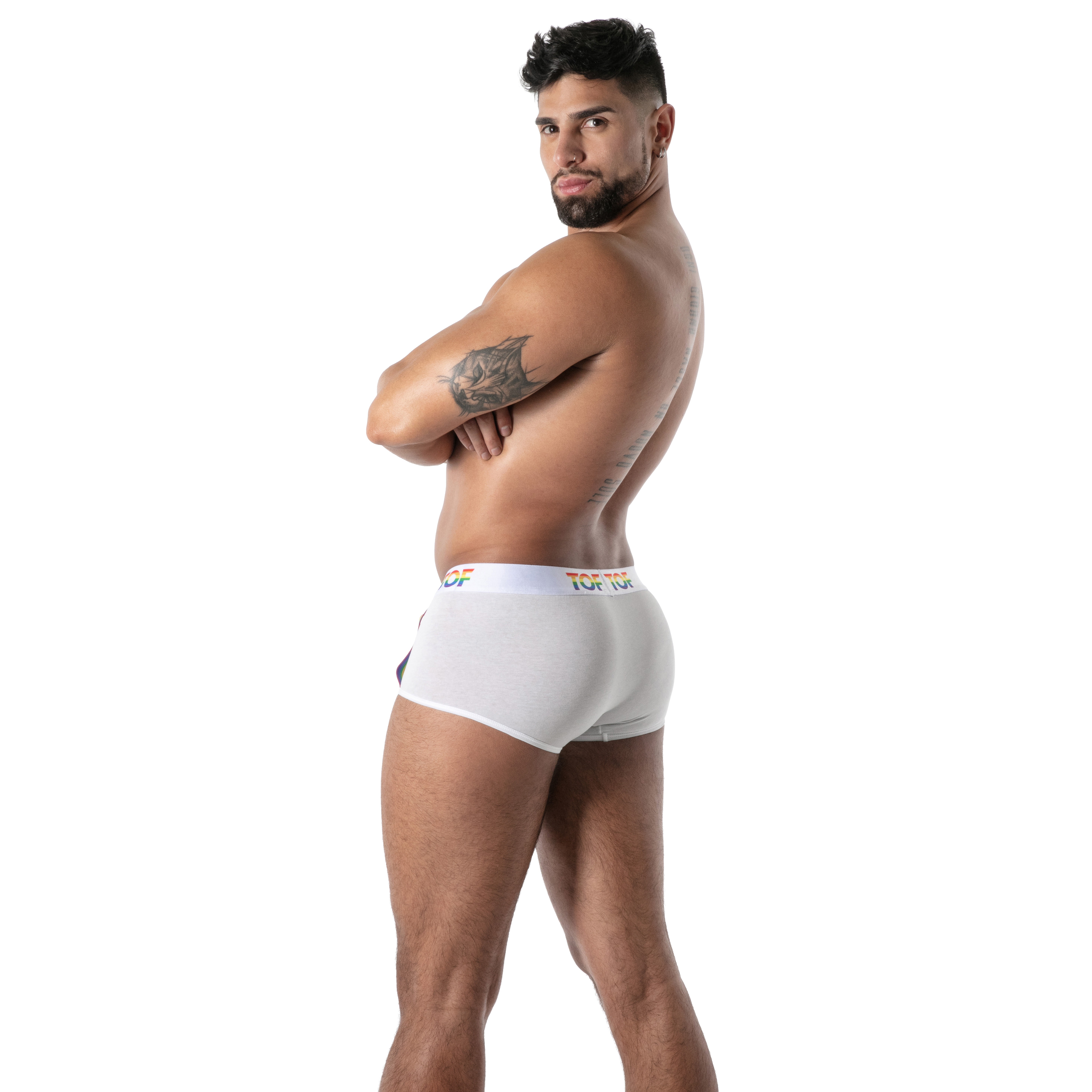 Esplora l'audace universo di TOF Paris con i boxer bianchi Joyful Pride, un capo iconico che si allinea con le nostre collezioni di biancheria intima da uomo, slip e mini briefs, perizoma con e senza cordoncina da uomo o i nostri eleganti body. Questo modello è rivolto agli uomini che cercano una dichiarazione di stile e una combinazione perfetta di sensualità, comfort e creatività.